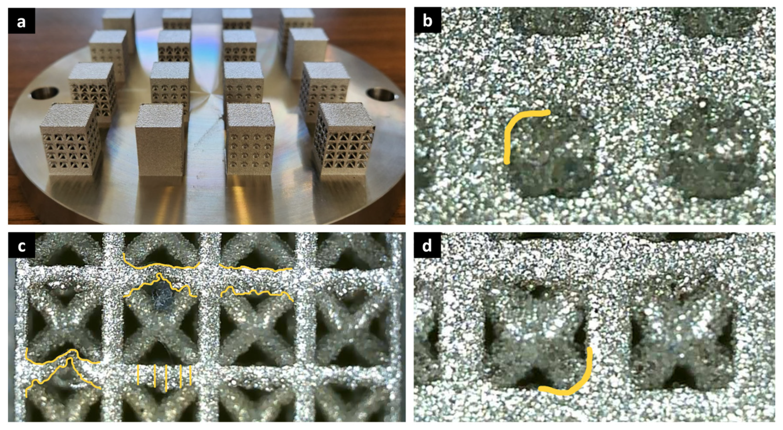 - Krakhmalev, P.; Yadroitsava, I.; Fredriksson, G.; Yadroitsev, I. In situ strength of 316L stainless steel micro-lattice structures manufactured by selective laser melting. Mater. Des. 2016, 106, 163–170. [Google Scholar] [CrossRef]