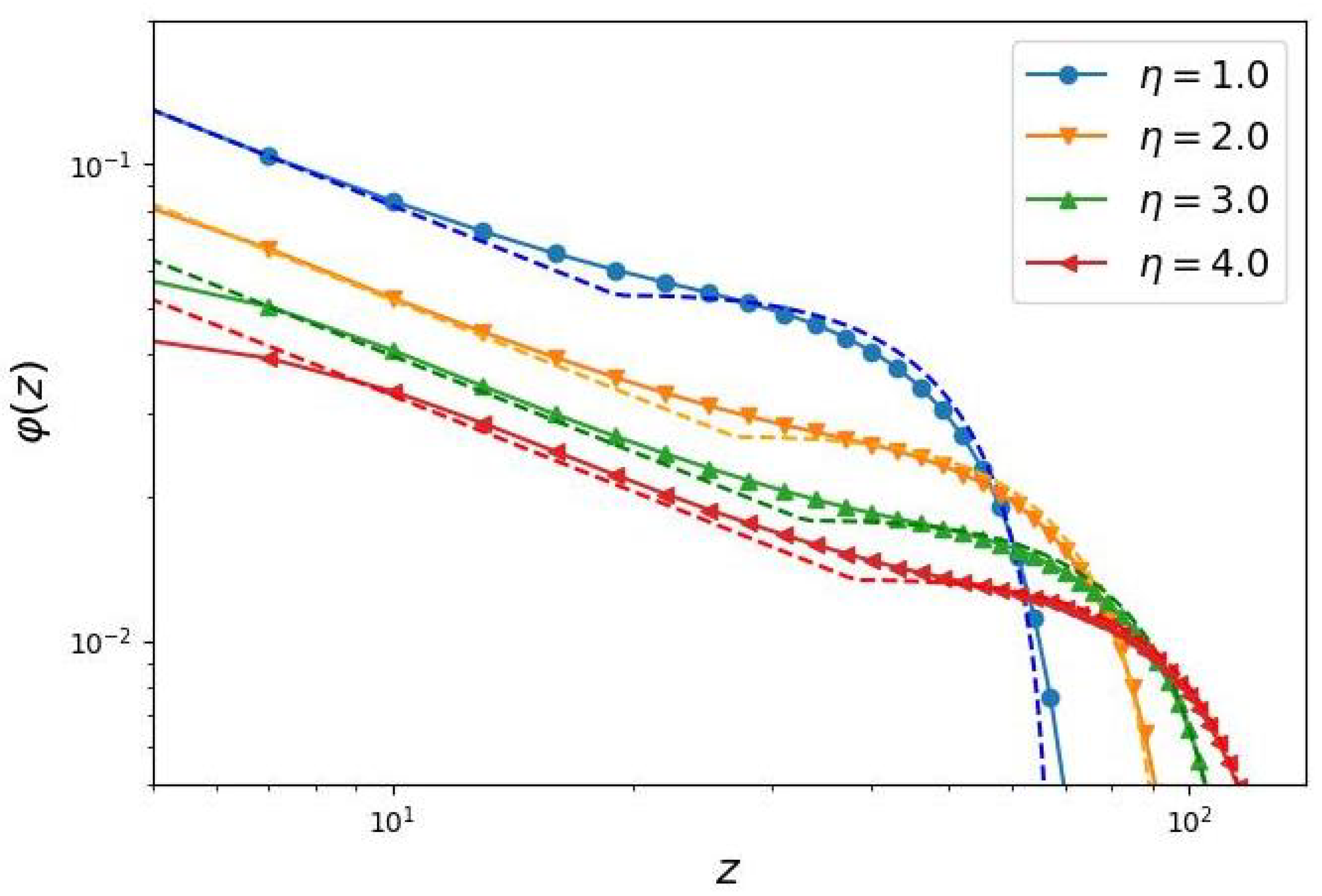 decreases. These dependences follow power-law behavior with exponents of