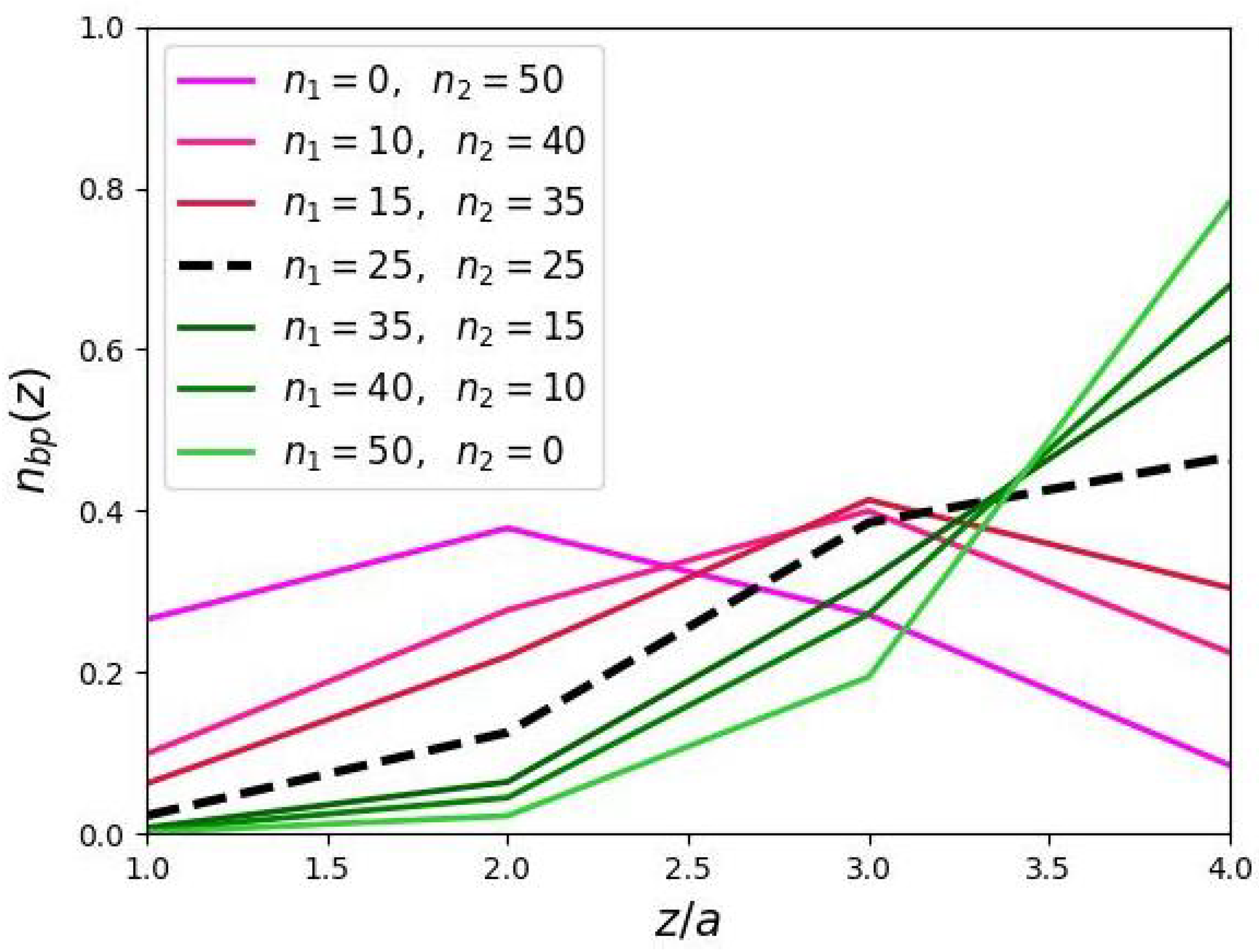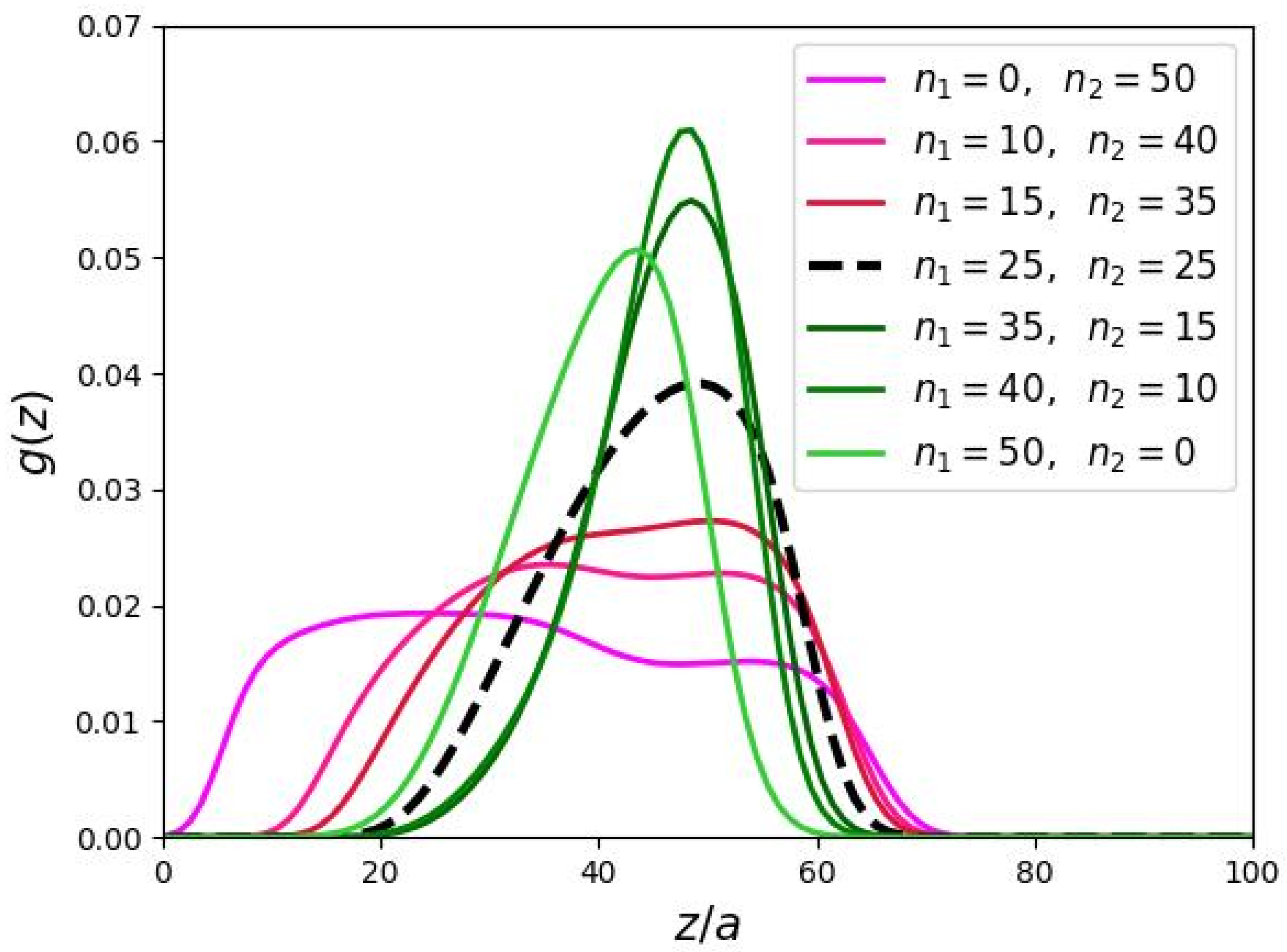 Let us first consider the symmetric case, where the contour lengths of the spacers and secondary side chains are equal in both domains ( and ). That is, we consider a cylindrical brush of comb-like chains with side chains of length n separated by spacers with length m.