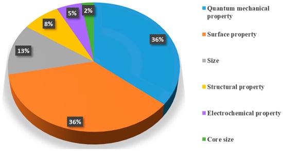Furthermore, both extrinsic and intrinsic factors influencing oxidative stress have also been examined. Among extrinsic factors, exposure duration and object of study were noted, with NM dosage most frequently emphasized in the reviewed literature (Table A2). Intrinsic factors, including the structure, size, and other physicochemical characteristic of NMs, showed varying capacities to induce or scavenge ROS. To illustrate their relative importance, Figure 4 presents a pie chart summarizing the distribution of intrinsic factors identified as critical drivers of oxidative stress across the reviewed studies. Notably, quantum mechanical properties—such as ionization potential, molecular orbitals, and energy levels—and surface chemistry characteristics, including factors like the type and number of surface ligands, zeta potential, and coating type, have emerged as the most consistently reported determinants. For instance, a material’s ionization potential governs its tendency to donate electrons. Consequently, NMs with a low IP readily lose electrons, enabling them to function as antioxidants by neutralizing reactive species. Similarly, surface chemistry is critical. Surface ligands can be engineered to modify key physicochemical properties of NMs, such as hydrophilicity and zeta potential. An effective antioxidant nanomaterial, for example, typically requires a hydrophilic surface to ensure good dispersion and bioavailability, thereby maximizing access to ROS targets in an aqueous environment. In contrast, surface functionalization that imparts a positive zeta potential can amplify pro-oxidant activity by facilitating electrostatic attraction to the anionic membranes of cells and mitochondria. This targeted localization triggers membrane disruption and facilitates overwhelming cellular uptake, culminating in severe, localized oxidative stress. Overall, ML offers a distinct advantage over traditional methods by elucidating complex, nonlinear relationships and synergistic effects that are often obscured in conventional analysis. Unlike simpler models, ML algorithms can capture intricate patterns such as sharp activation thresholds, optimal “sweet spots,” and exponential dependencies. This capability allows for the development of models that more faithfully represent the underlying physics and chemistry, leading to significantly greater predictive accuracy.