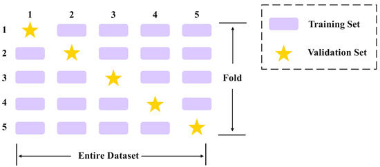 To enhance the generalization ability of YOLOv13 in the yield detection task for Yunnan large leaf tea trees and to reduce performance fluctuations due to data partitioning, this study further added five-fold cross-validation to optimize the network training stage [29]. As shown in Figure 6, compared to traditional training and validation splits, five-fold cross-validation randomly divides the dataset into five subsets of approximately equal size. In each round of experimentation, one subset is selected as the validation set, and the remaining four subsets are used for training. This process is repeated five times, with training and validation performed in a cyclic manner. This method effectively reduces result bias caused by sample distribution differences, maximizes the utilization of limited sample resources, and enhances the comprehensiveness of feature learning and the robustness of result evaluation.