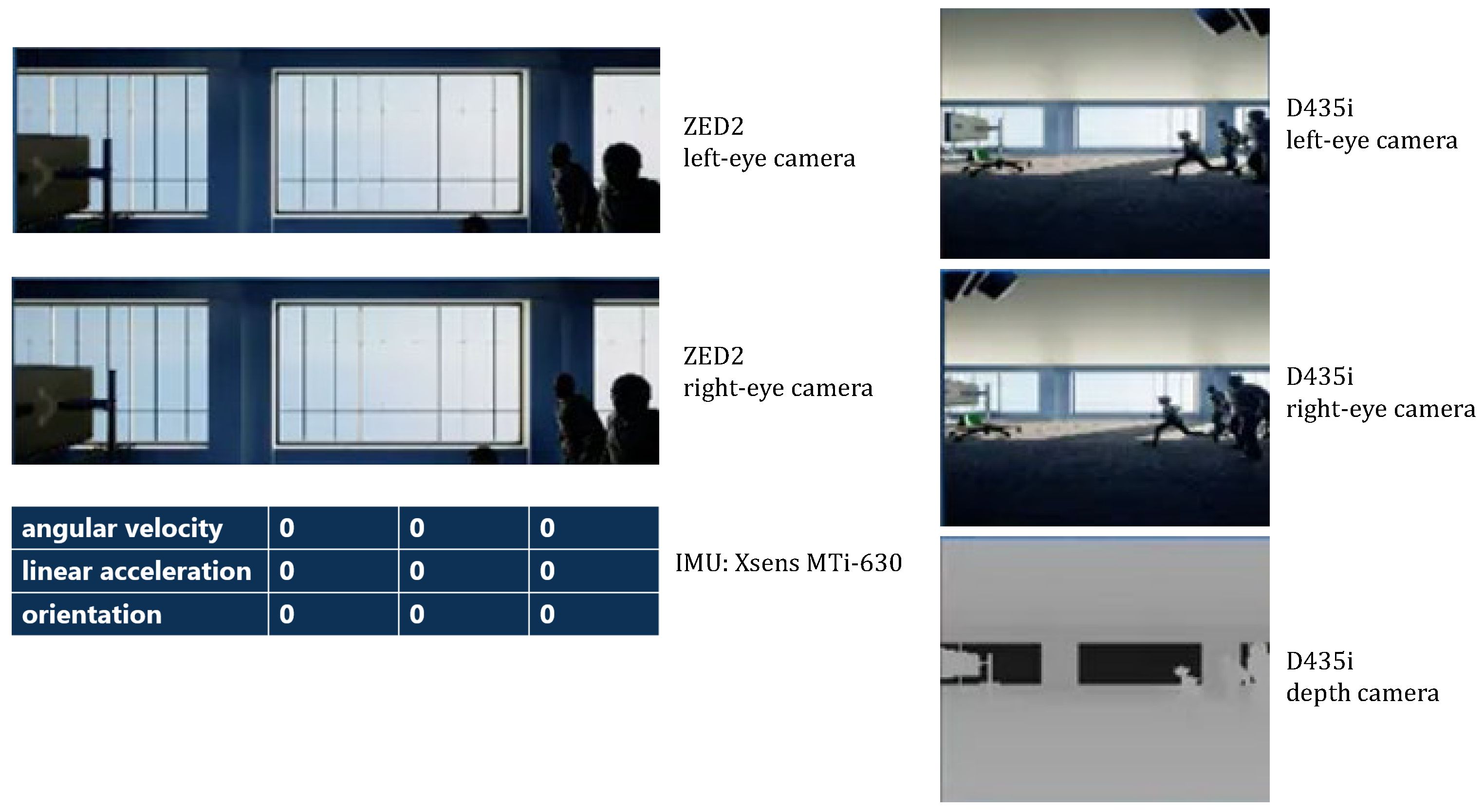 Figure 6 presents the observation window, displaying feeds from the two stereo cameras, two blind-spot cameras, and data gathered from the IMU.