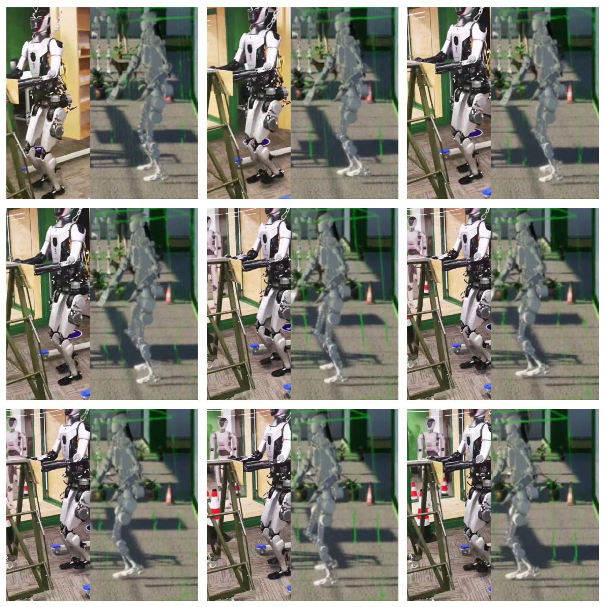Figure 10 illustrates the virtual representation of Loong mimicking the walking pose of its physical counterpart. It demonstrates the effectiveness of our monitoring subsystem and highlights its applicability in practical surveillance tasks.