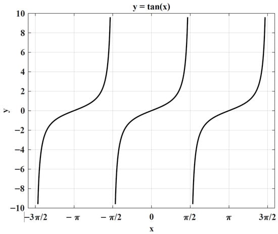 The deflection angle is confined to the range . Position updates are skipped when takes the values 0, , or . It is important to note that, as approaches from the left (), tends to positive infinity, whereas approaching from the right () results in tending to negative infinity. This unbounded behavior of may cause the computation of to become unstable or undefined. Moreover, at , since , the position remains unchanged. The dependency of on is depicted in Figure 1.