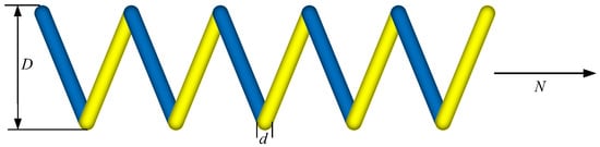 Figure 6 illustrates the schematic of the tension/compression spring optimization problem, where the design variables—wire diameter (d), mean coil diameter (D), and number of active coils (N)—are adjusted to minimize the spring’s total mass. The goal is to ensure that the resulting spring meets all the performance requirements under operational loads while achieving the lightest possible configuration. This kind of optimization framework not only yields high-performance and lightweight spring solutions but also serves as a valuable reference model for other mechanical design challenges.
