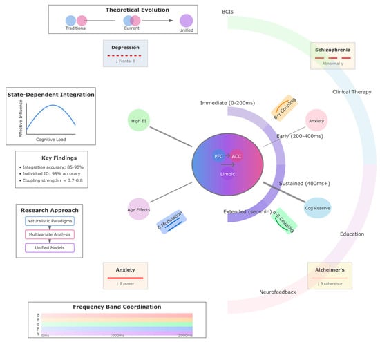 Despite decades of research establishing correlations between EEG patterns and psychological states, the field lacks unified frameworks that systematically map neural oscillations to theoretical models of cognition and emotion. This gap becomes particularly evident when considering that brain activity represents multiple simultaneous processes across different spatial and temporal scales [15]. Current approaches often focus on isolated frequency bands or specific cognitive domains, missing the rich interactions between neural systems that give rise to complex mental states [16,17,18,19].
