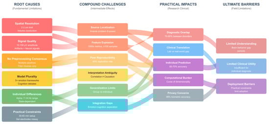 Section 6 extends this mapping to cognitive domains, examining how neural oscillations relate to cognitive load, memory processes, and executive control. Section 7 addresses the critical integration of affective and cognitive perspectives, recognizing their fundamental interconnection. Section 8 examines challenges and limitations, from technical constraints to theoretical gaps. Section 9 explores future directions, including technological advances and emerging applications. The review concludes with Section 10, addressing ethical considerations essential for the responsible development of brain-reading technologies.