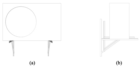 Standardized modeling of the original 1.5 horsepower air conditioning outdoor unit. (a) Front view; (b) Side view.