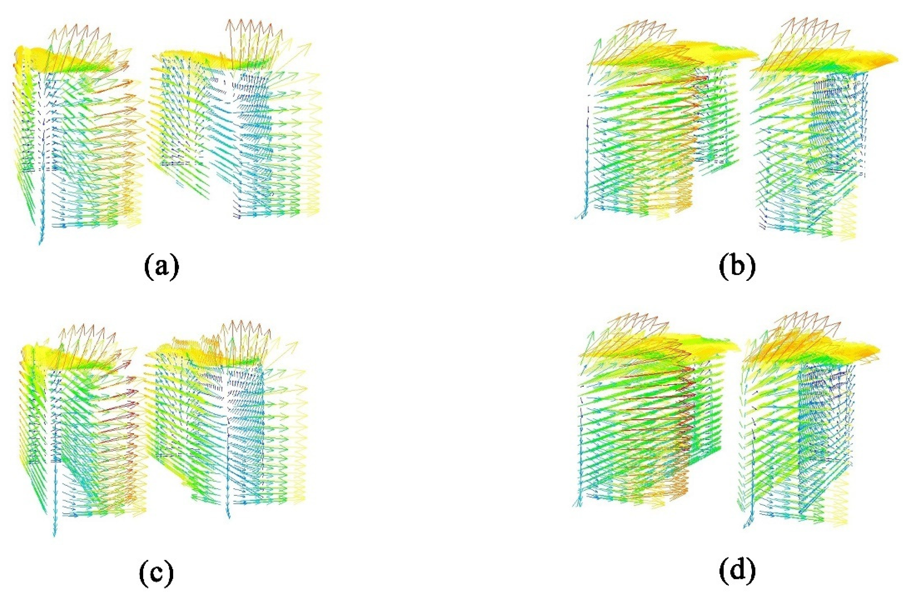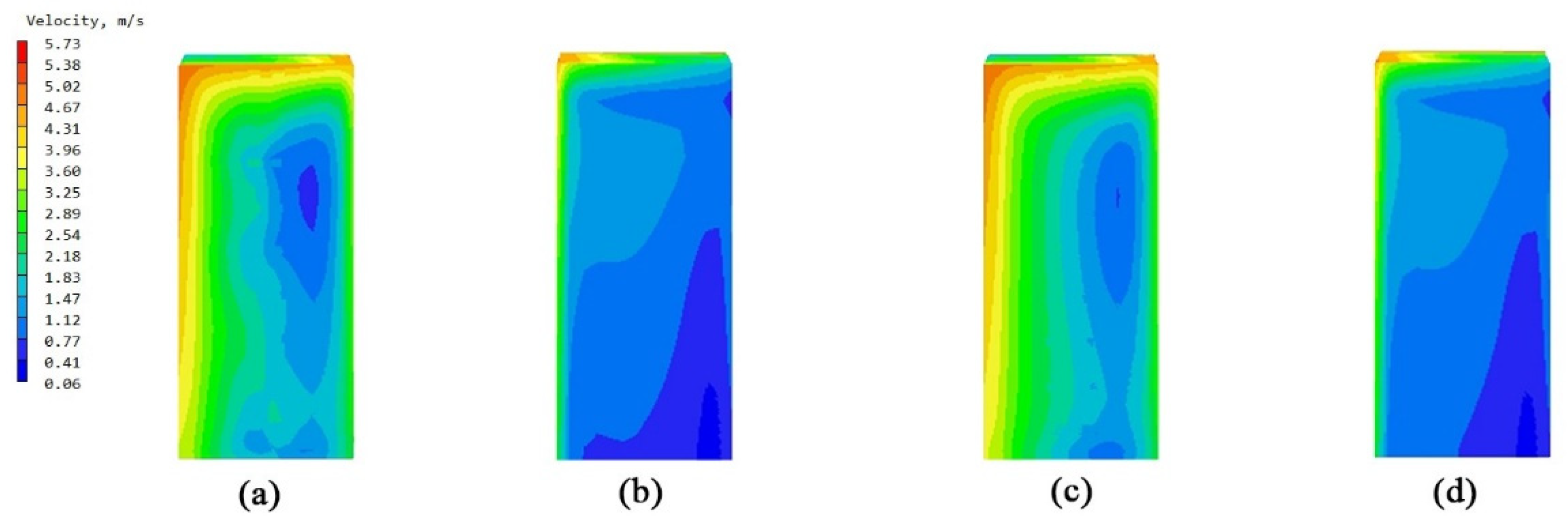 3.4. Investigation of Velocity Vector Fields for Bionic Enclosure Structures