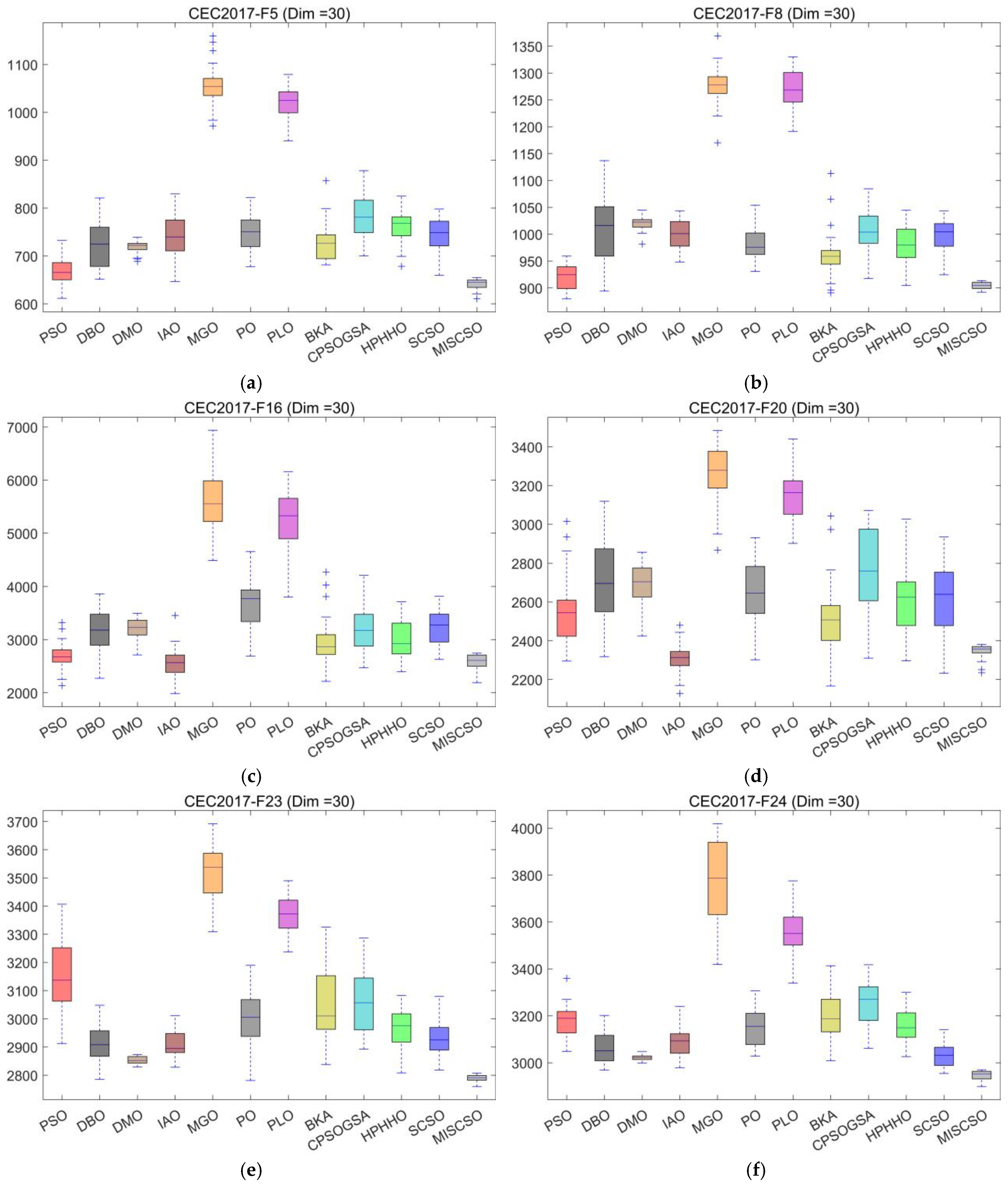 - The algorithms were qualitatively analyzed using 30 test functions from the IEEE CEC2017 test set and compared with 11 other algorithms to obtain competitive results. Most importantly, the algorithms were statistically analyzed to fully analyze the superior performance of MISCSO.