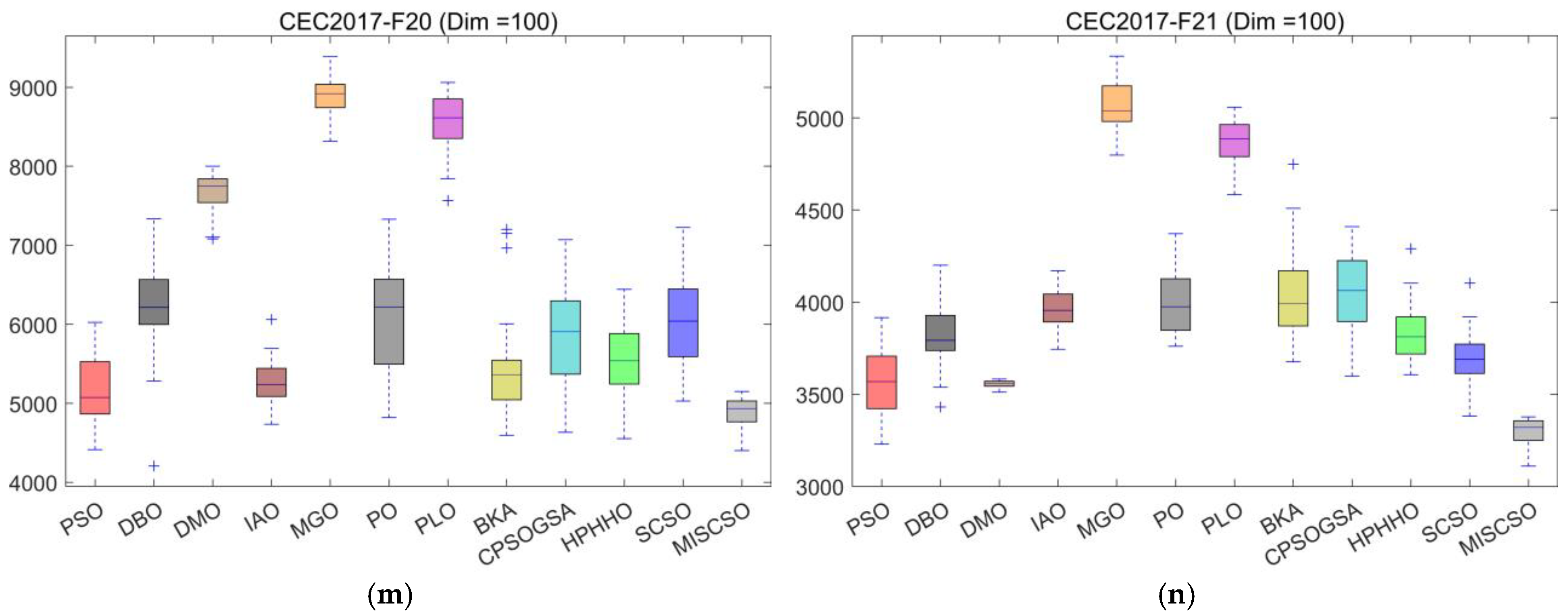| ID | Metric | PSO | DBO | DMO | IAO | MGO | PO | PLO | BKA | CPSOGSA | HPHHO | SCSO | MISCSO |