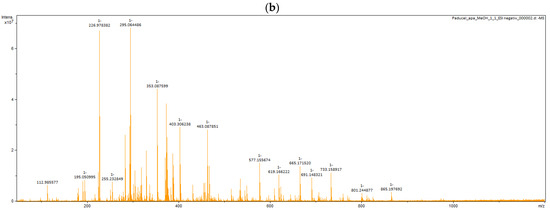 | 2″-O-α-L-Rhamnopyranosyl-isovitexin | C27H30O14 | 579.170832 | 577.156279 | 579.170522 | 577.155674 | −0.535248 | −1.048243 |