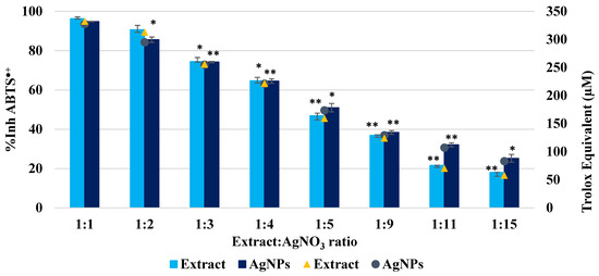 - Ali, M.; Kim, B.; Belfield, K.D.; Norman, D.; Brennan, M.; Ali, G.S. Green Synthesis and Characterization of Silver Nanoparticles Using Artemisia Absinthium Aqueous Extract—A Comprehensive Study. Mater. Sci. Eng. C 2016, 58, 359–365. [Google Scholar] [CrossRef] [PubMed]