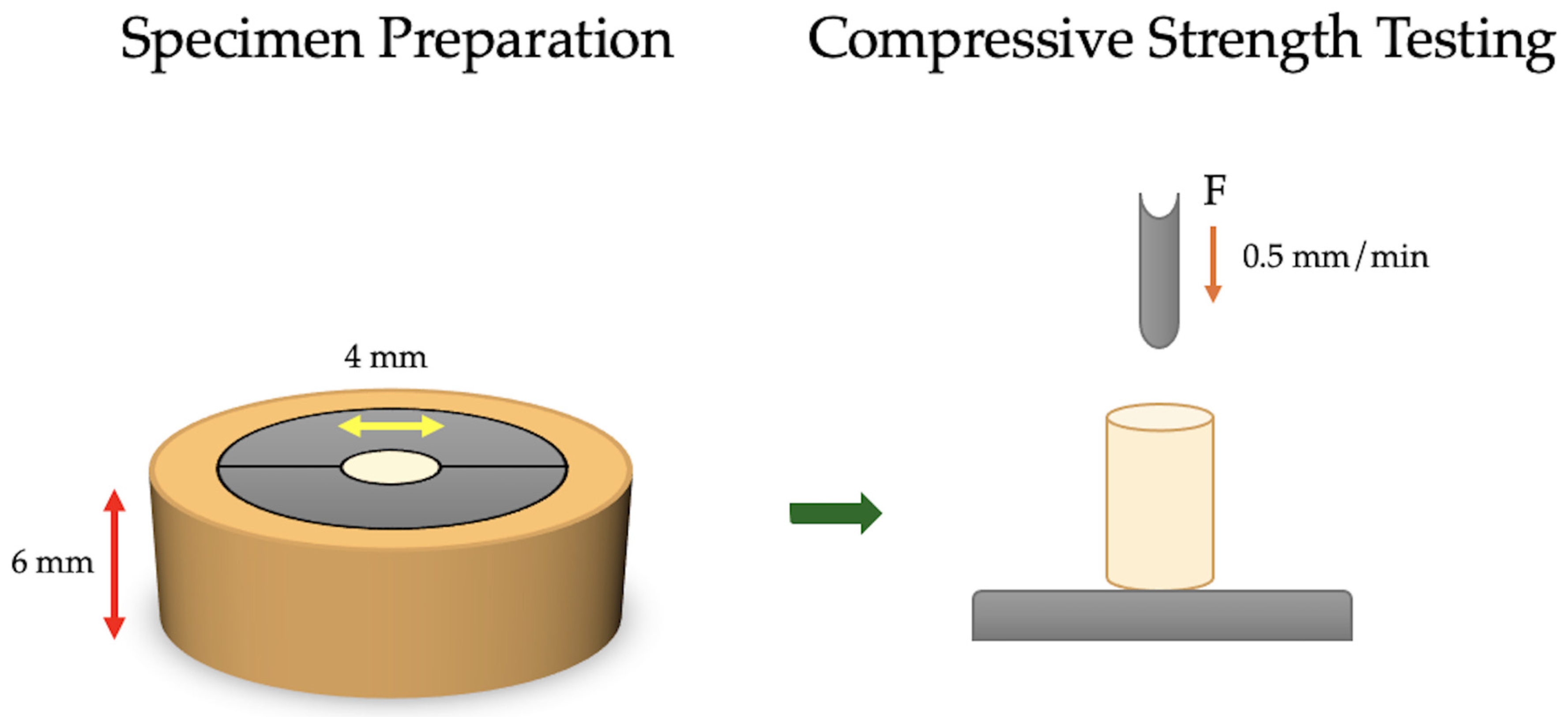 2.1. Compressive Strength Specimen Preparation and Testing