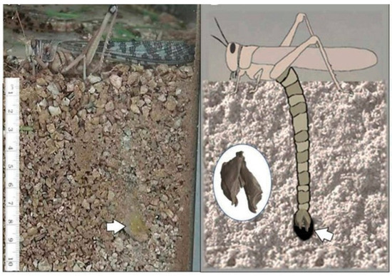 The process of laying eggs by a female locust [34].