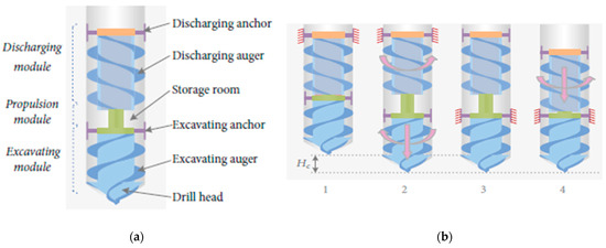 - Lee, J.; Tirtawardhana, C.; Myung, H. Development and analysis of digging and soil removing mechanisms for mole-bot: Bio-inspired mole-like drilling robot. In Proceedings of the 2020 IEEE/RSJ International Conference on Intelligent Robots and Systems (IROS), Las Vegas, NV, USA, 25–29 October 2020; pp. 7792–7799. [Google Scholar]