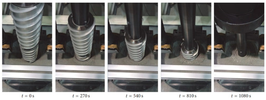 Recent improvements in inchworm-inspired extraterrestrial drilling included bidirectional drilling capabilities, allowing the device to drill down and then withdraw to retrieve a sample. Laboratory experiments have proven that the bidirectional module increases operational flexibility and makes underground exploration more efficient. The authors of [40] demonstrated that the inchworm drill may cut drilling time by 40% while retaining the integrity of granular and cohesive soils. The drilling process of GRC-3 lunar regolith simulant with a stainless steel IBR prototype is depicted in Figure 10 [41]. As research progresses, refinements in actuator design and soil interaction modeling are expected to further enhance the capabilities of these bioinspired systems, paving the way for deeper and more effective extraterrestrial subsurface investigations [41]. The IBR has undergone terrestrial and microgravity parabolic flight trials, warranting TRL-4, with further testing required for integration into a full robotic system.