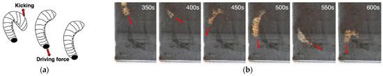 (a) Larva burrowing concept. (b) The dynamics of burrowing in soil [50].