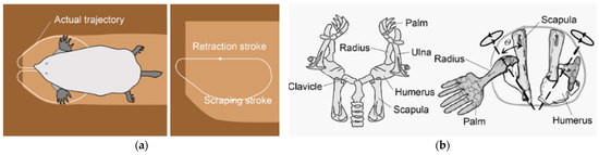 (a) Trajectory of mole’s forelimbs. (b) Detailed diagram of forelimb [72].