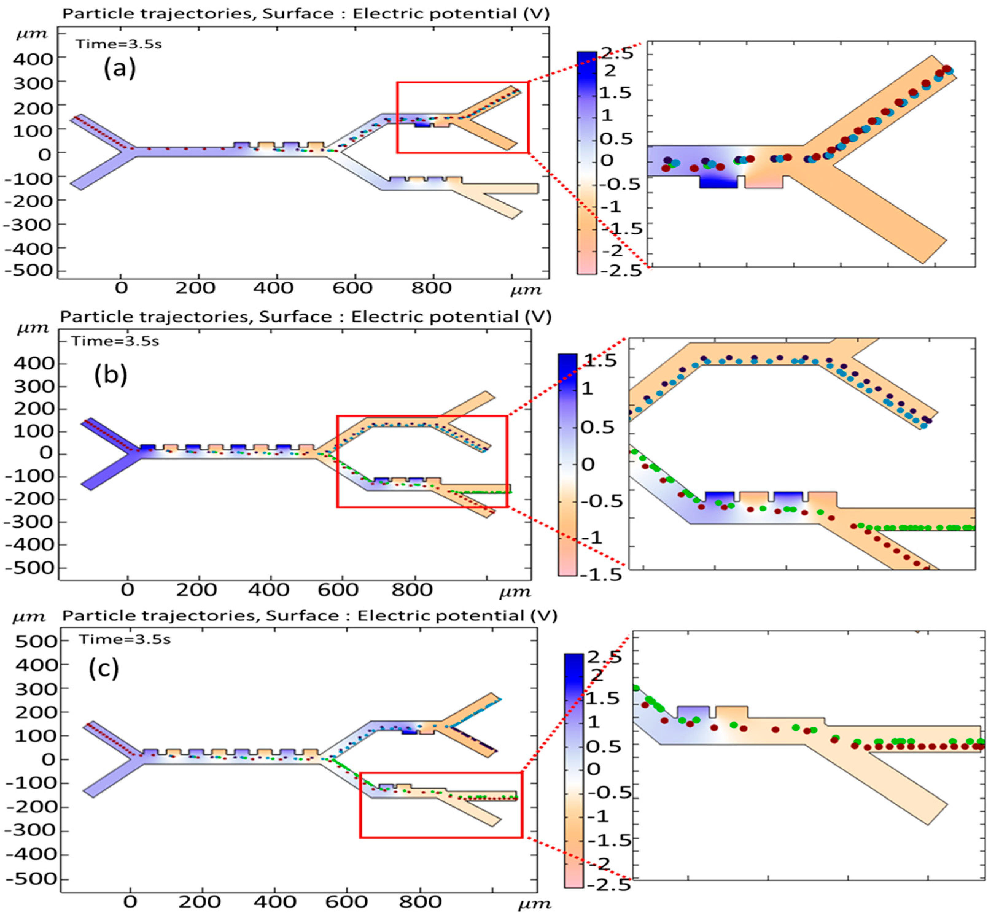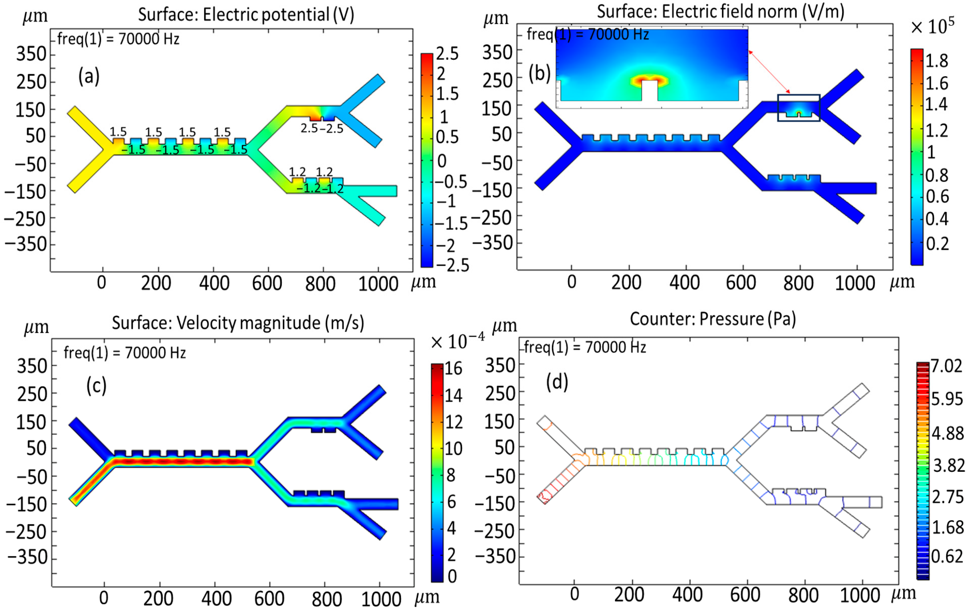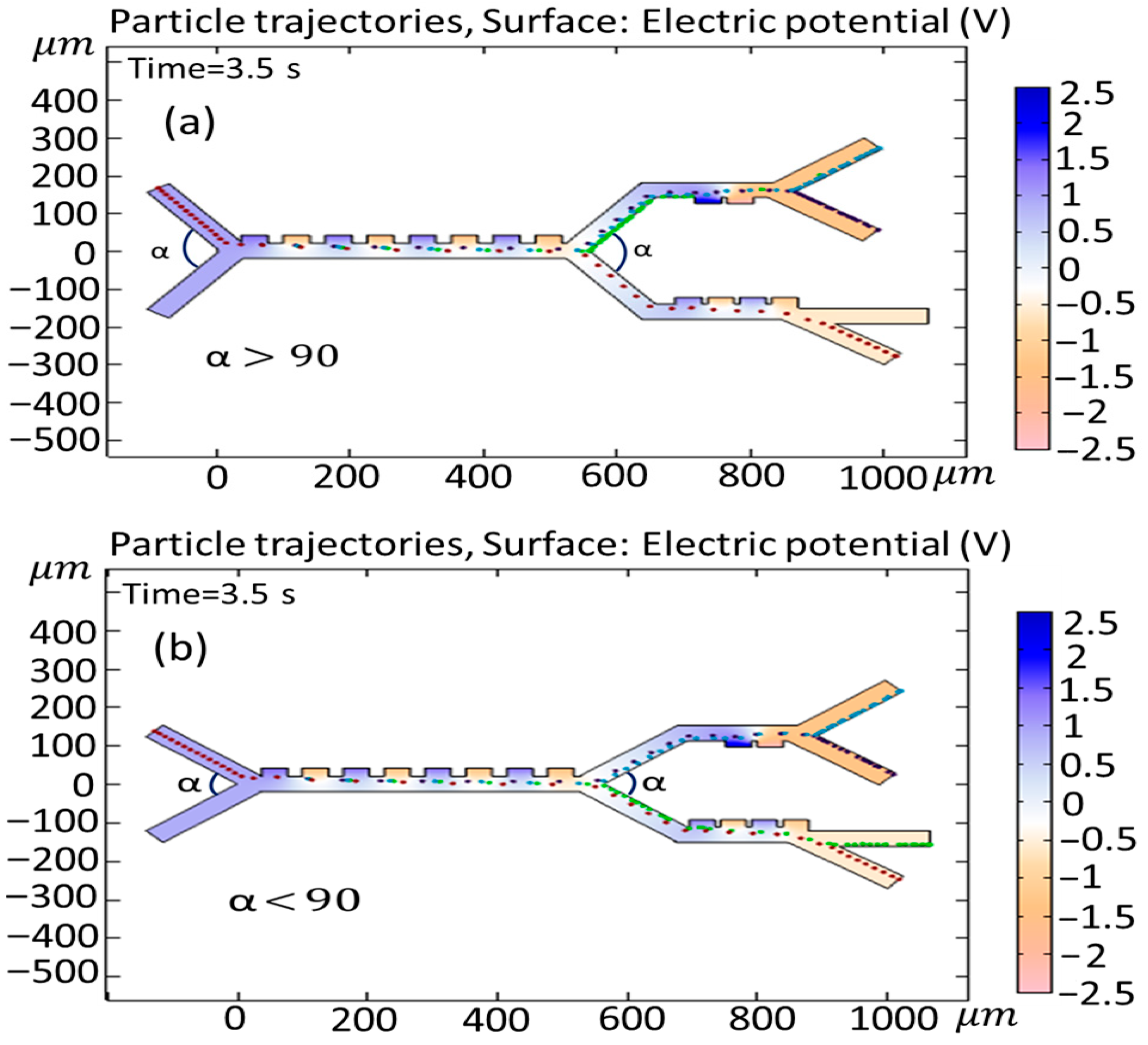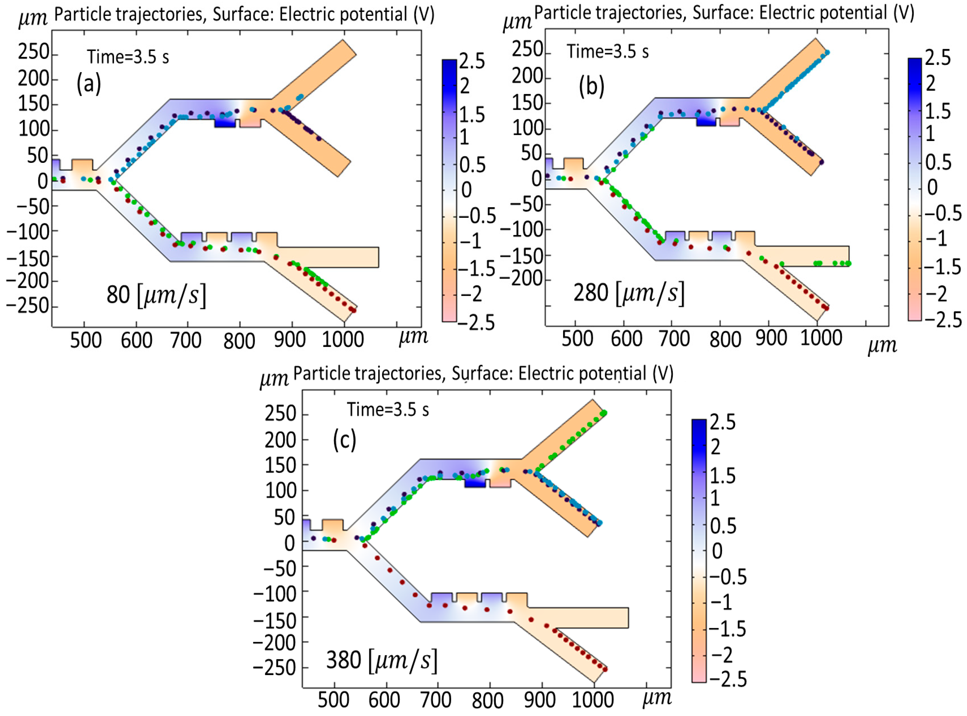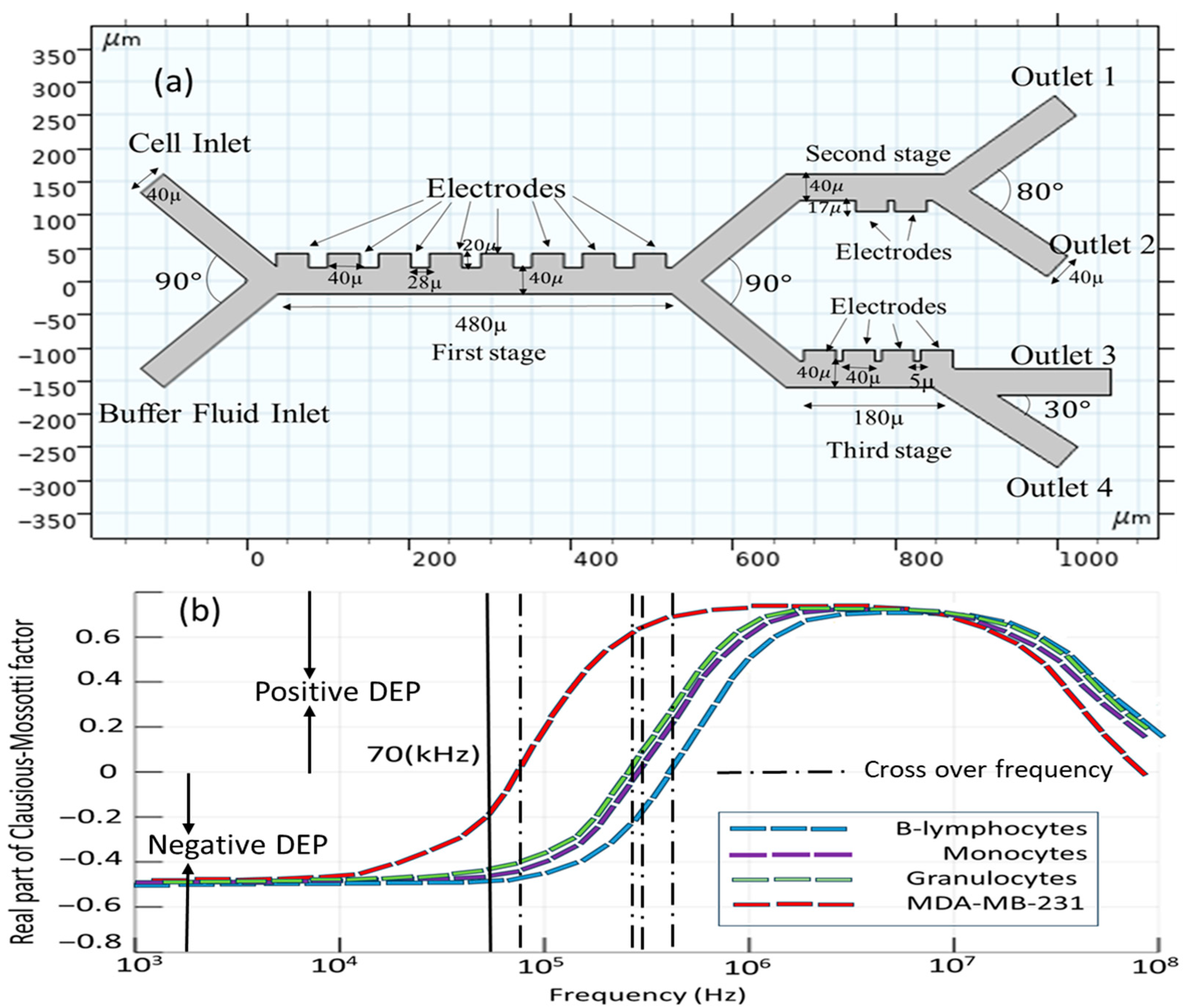 - Pakhira, W.; Kumar, R.; Ibrahimi, K.M. Design and Numerical Simulation of a Microfluidic Lab-on-a-Chip Utilizing Positive and Negative Dielectrophoresis Technique for Separation of Multiple CTCs Distinctly. Comput. Part. Mech. 2024, 11, 2869–2882. [Google Scholar] [CrossRef]