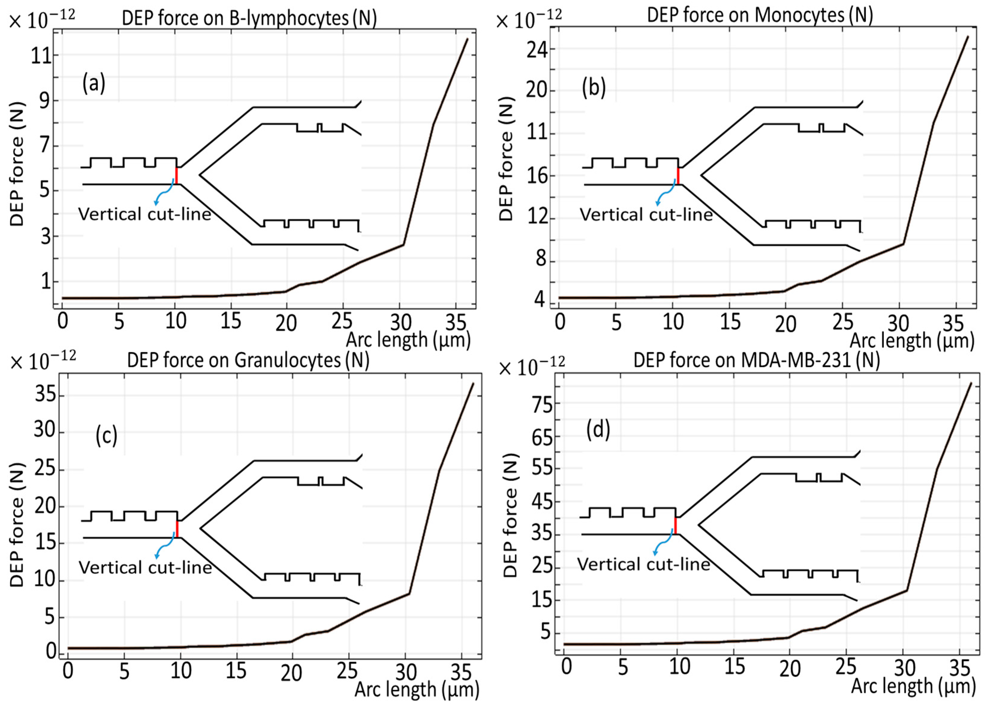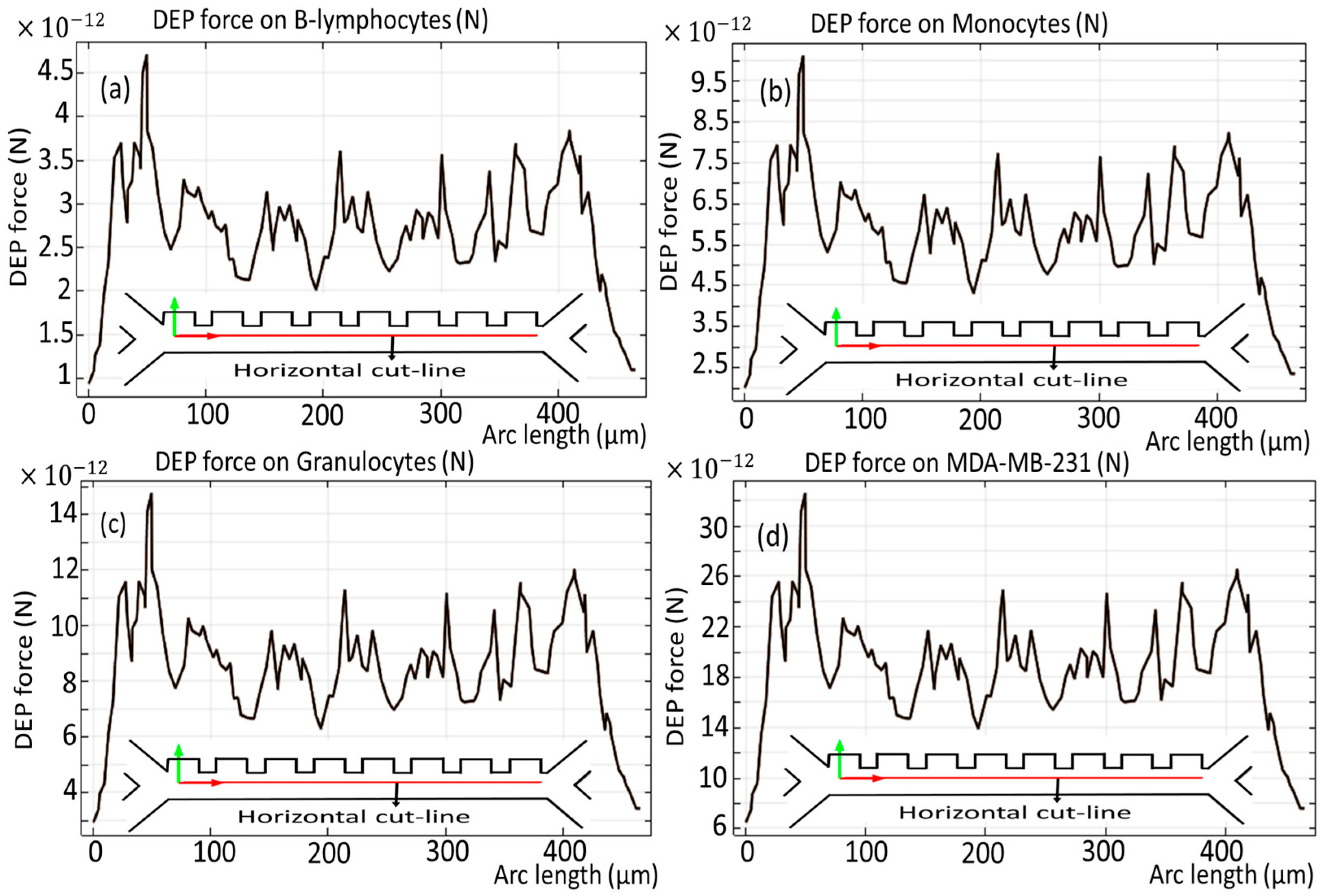- Zhang, Y.; Chen, X. Blood Cells Separation Microfluidic Chip Based on Dielectrophoretic Force. J. Braz. Soc. Mech. Sci. Eng. 2020, 42, 1–11. [Google Scholar] [CrossRef]
