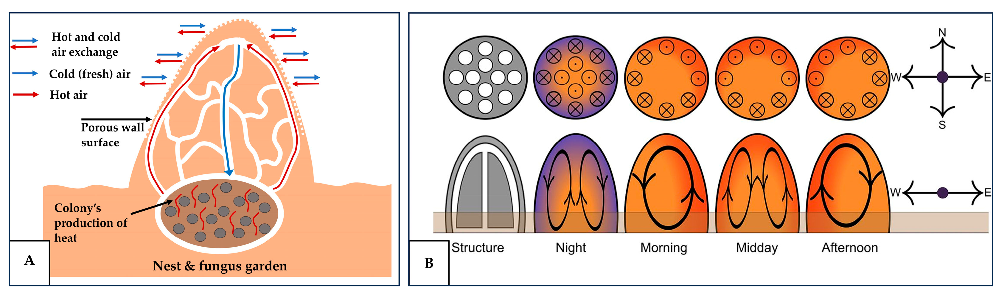 - AbdUllah, A.; Said, I.B.; Ossen, D.R. Cooling Strategies in The Biological Systems and Termite Mound: The Potential of Emulating Them to Sustainable Architecture and Bionic Engineering. ARPN J. Eng. Appl. Sci. 2018, 13, 8127–8141. [Google Scholar]