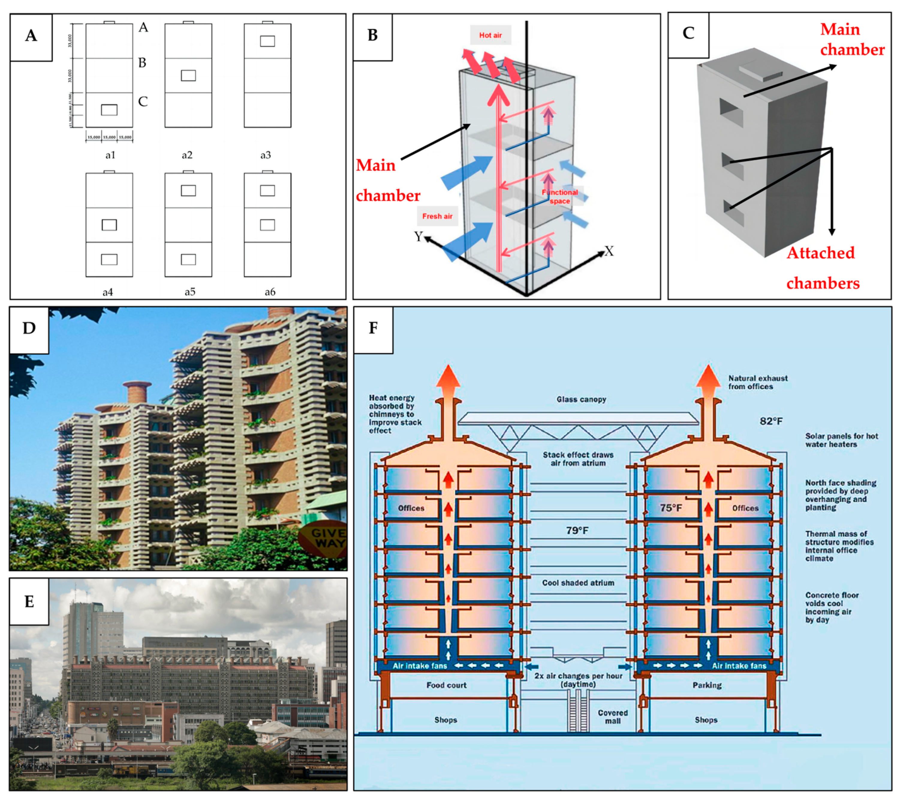 3.2. Application of Bio-Inspired Passive Ventilation Mechanisms to the Built Environment