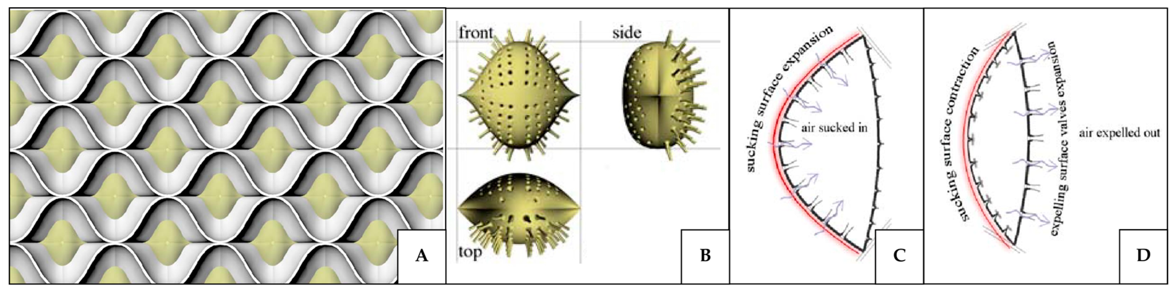 4.2. Application of Bio-Inspired Active Ventilation Mechanisms to the Built Environment