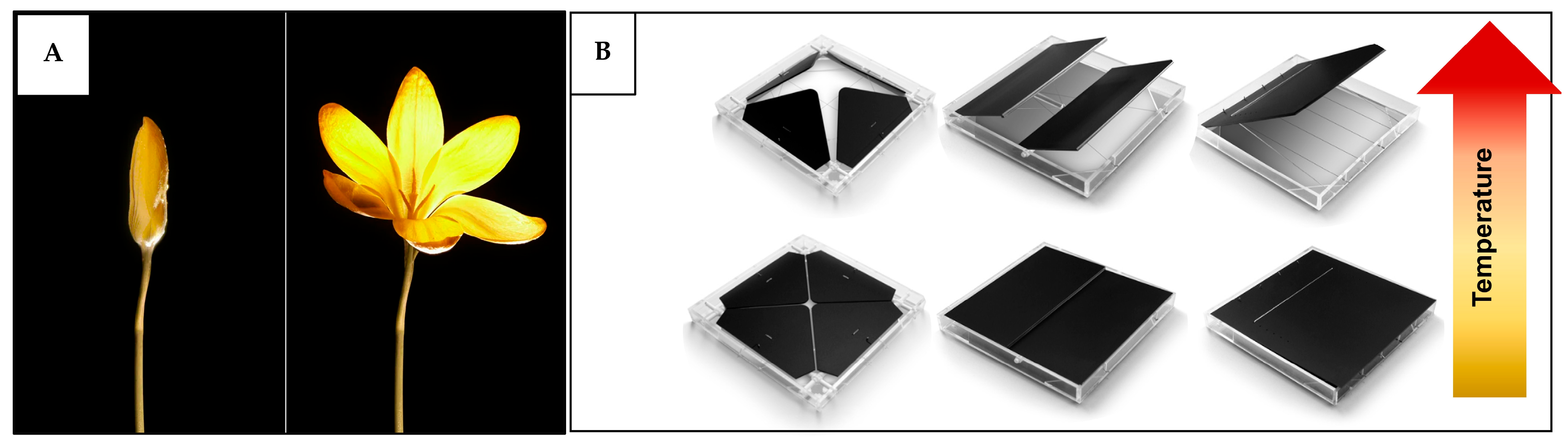 | Thermal comfort issue—heat | Off-Earth habitats | Temperature-responsive ventilation panels that open or close autonomously with the increase or decrease in temperature levels. | Integrated into habitat walls or panels to regulate airflow and heat autonomously. |