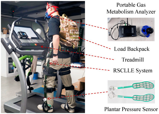 To assess the comprehensive performance of the RFCLLE under load conditions, we recruited eight male participants to engage in experiments examining load transfer and metabolic costs. All experiments were conducted under identical environmental conditions to mitigate the influence of external variables. Recognizing that the subjects’ proficiency with the exoskeleton could influence the level of assistance provided, all participants underwent training on the proper techniques for wearing and utilizing the exoskeleton prior to the experiments [33,34]. Before the experiments, informed consent was obtained from all participants. The experimental protocol was approved by the Medical Ethics Committee of the Shenzhen Institutes of Advanced Technology (SIAT) under Application No. SIAT-IRB-240415-H0741.The final results were presented as mean ± standard error of the mean (SEM) and analyzed using a two-sided paired t-test with Holm-Šidák correction, with significance set at 0.05. The physiological parameters of the subjects are detailed in Table 1.