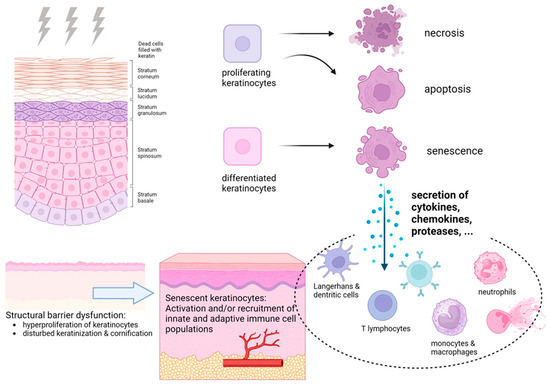 Schematic illustration of the subsequent alterations in immune cells, skin cells, and the skin barrier following radiotherapy. Reproduced from Bratborska et al. [13], under the CC BY 4.0 license.