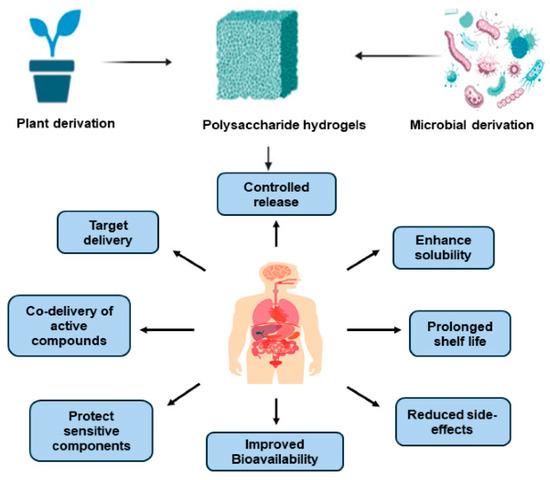 Sources and biological advantages of polysaccharide-based hydrogels. Reproduced from Sepe et al. [59], under the CC BY 4.0 license.