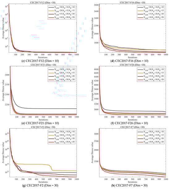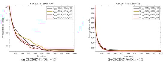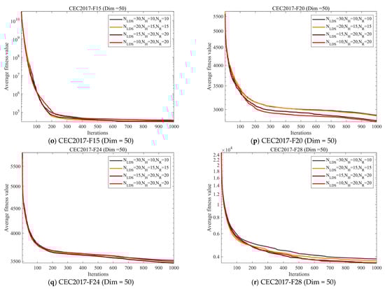 Parameter sensitivity analysis holds significant importance for studying the performance of heuristic algorithms. Heuristic algorithms typically rely on multiple control parameters to balance global search capabilities with local exploration abilities. Different parameter settings can significantly impact the algorithm’s convergence speed, stability, and solution accuracy. By conducting sensitivity analysis on key parameters, we can systematically evaluate their impact on algorithmic performance, thereby determining reasonable parameter ranges to enhance robustness and adaptability. Consequently, this subsection performs parameter sensitivity analysis on MIPOA, with experimental results presented in Figure 3.
