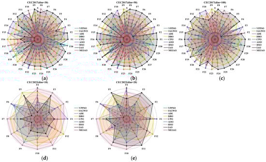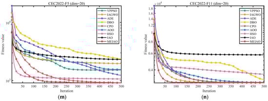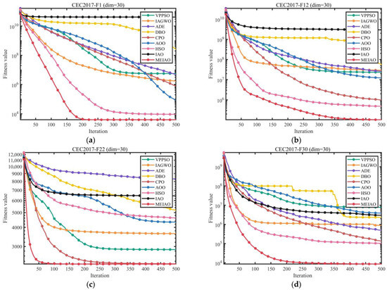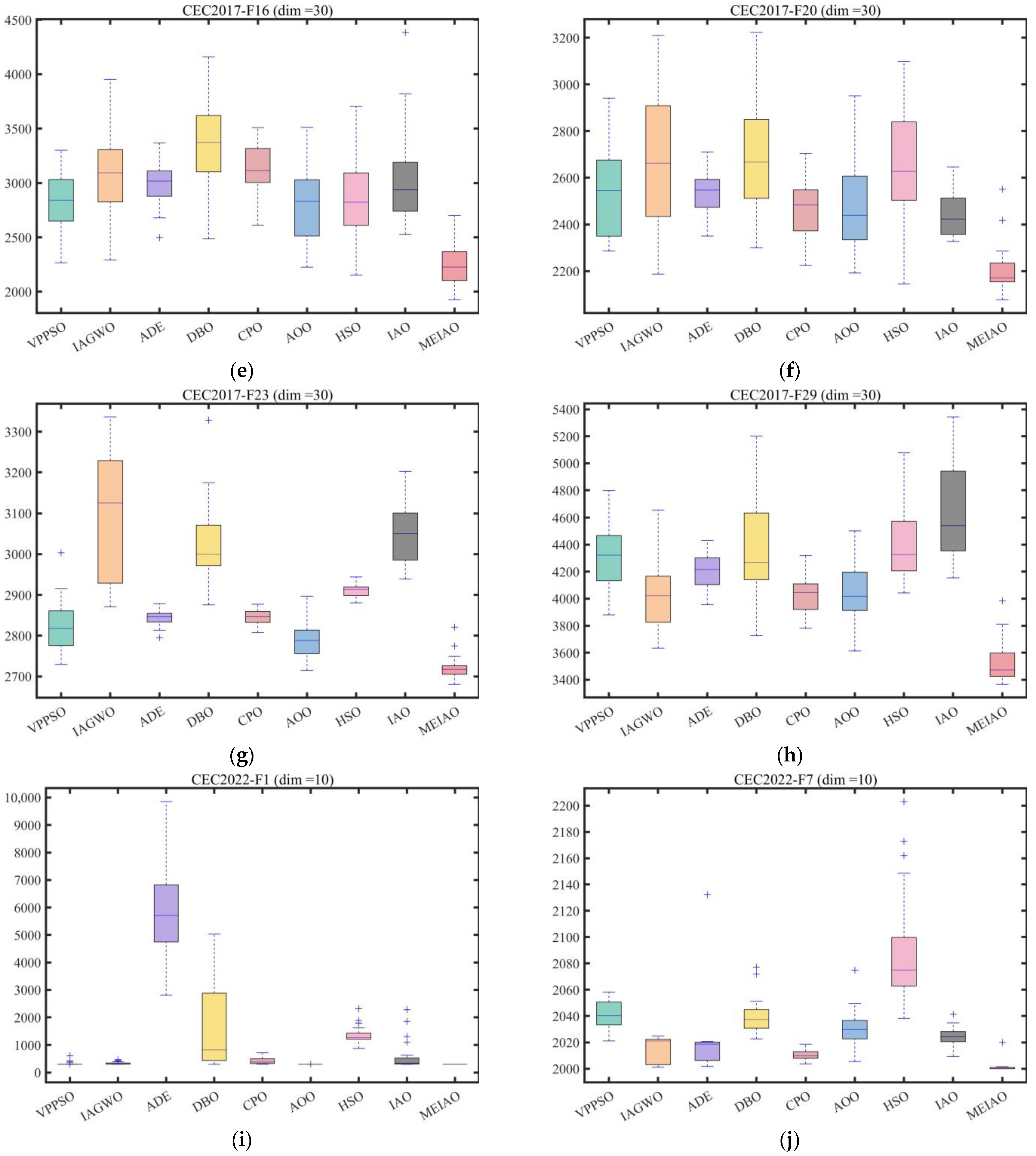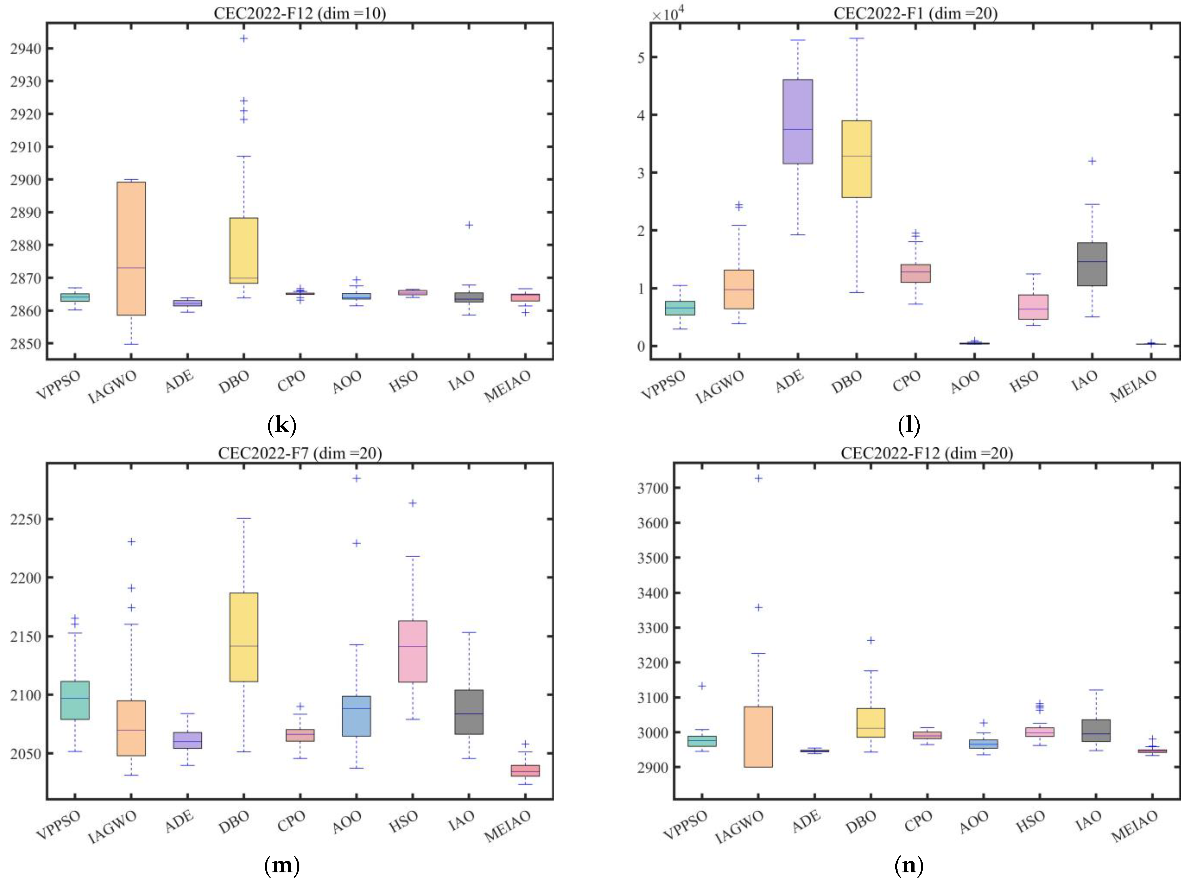 - Extensive experiments on the CEC2017 and CEC2022 benchmark suites compare MEIAO with eight mainstream algorithms. Evaluation metrics including mean, standard deviation, Friedman mean rank, and Wilcoxon rank-sum tests demonstrate MEIAO’s superior performance in local exploitation of unimodal functions, global exploration of multimodal functions, and complex adaptation of composite functions.