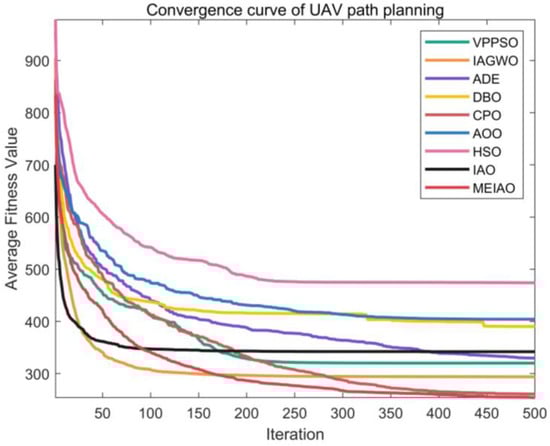 - MEIAO is applied to UAV path planning in 3D mountainous environments, with a comprehensive cost optimization model considering path length, altitude standard deviation, and turning smoothness. Through quantitative analysis of path costs (best/worst/average), 3D path visualization, and convergence curves, MEIAO is shown to generate shorter, smoother, and collision-free feasible paths. It also exhibits strong robustness across multiple trials, providing an efficient and reliable path optimization solution for practical UAV operations.