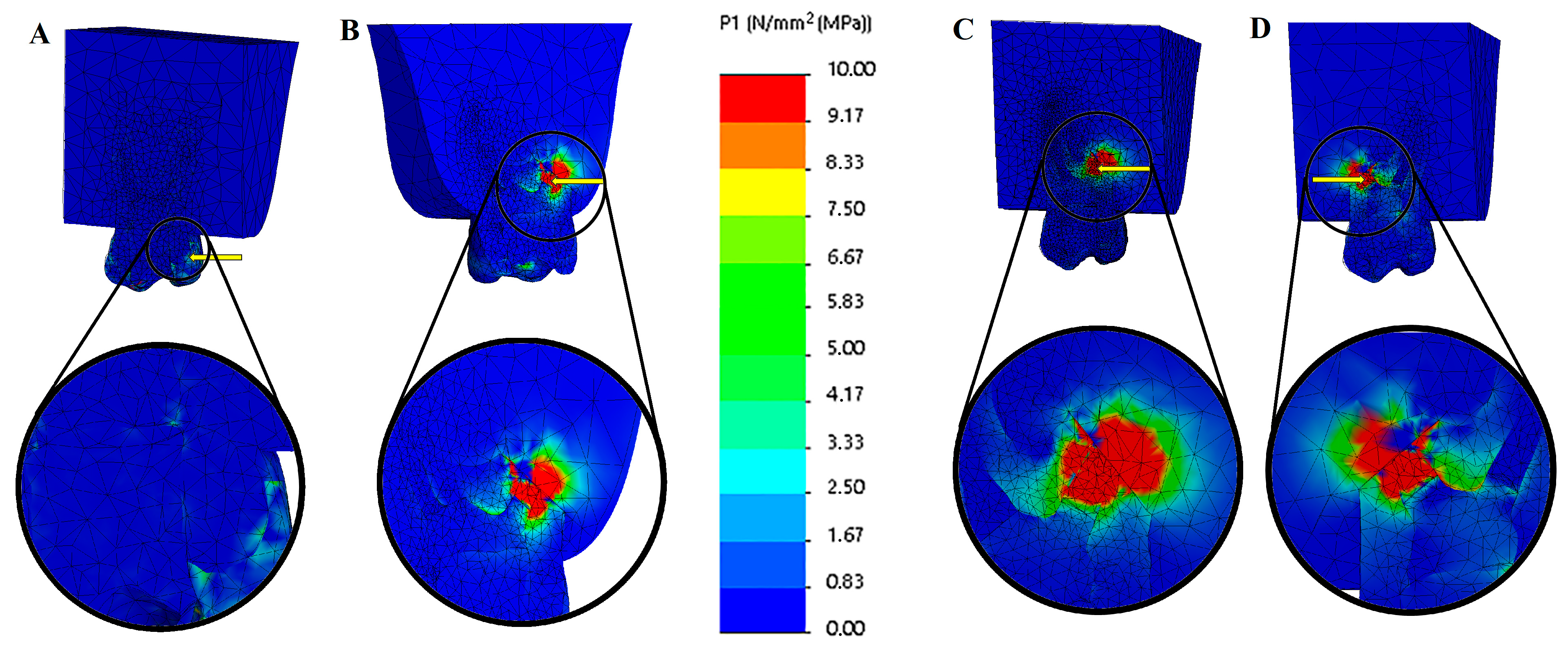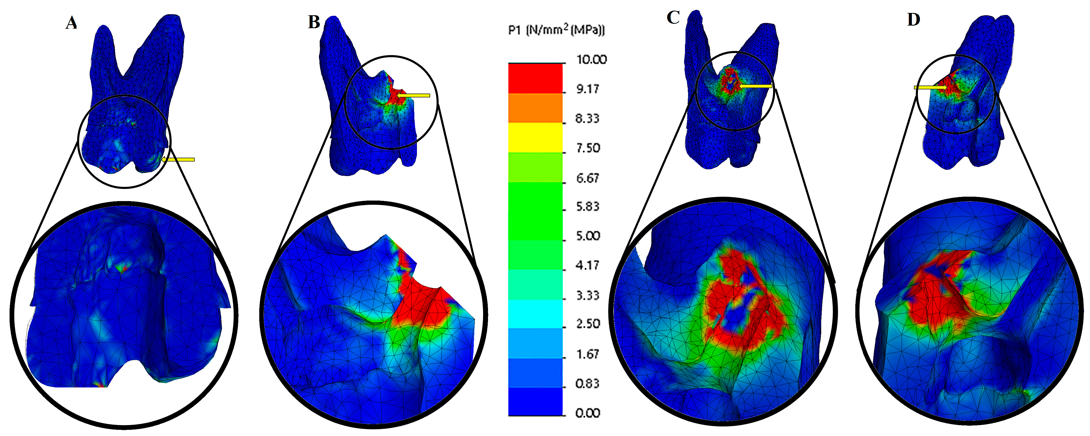 45], and von Mises stress distribution can assist in identifying regions of root dentin that may be at risk of failure [