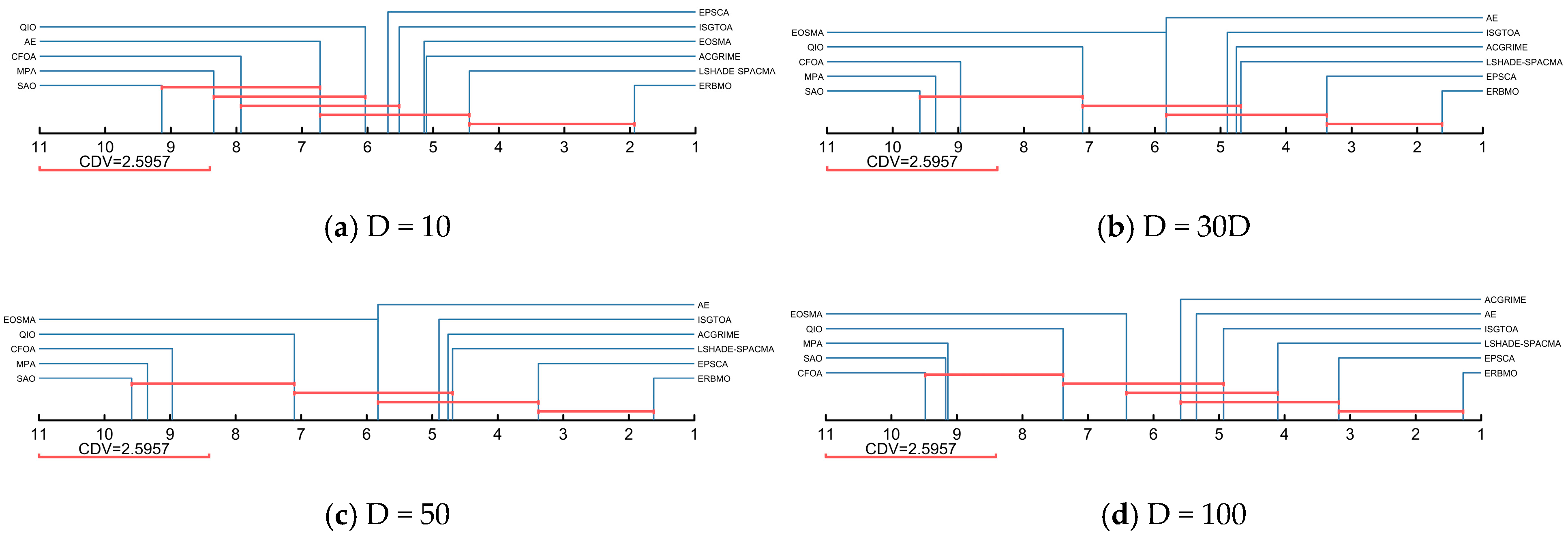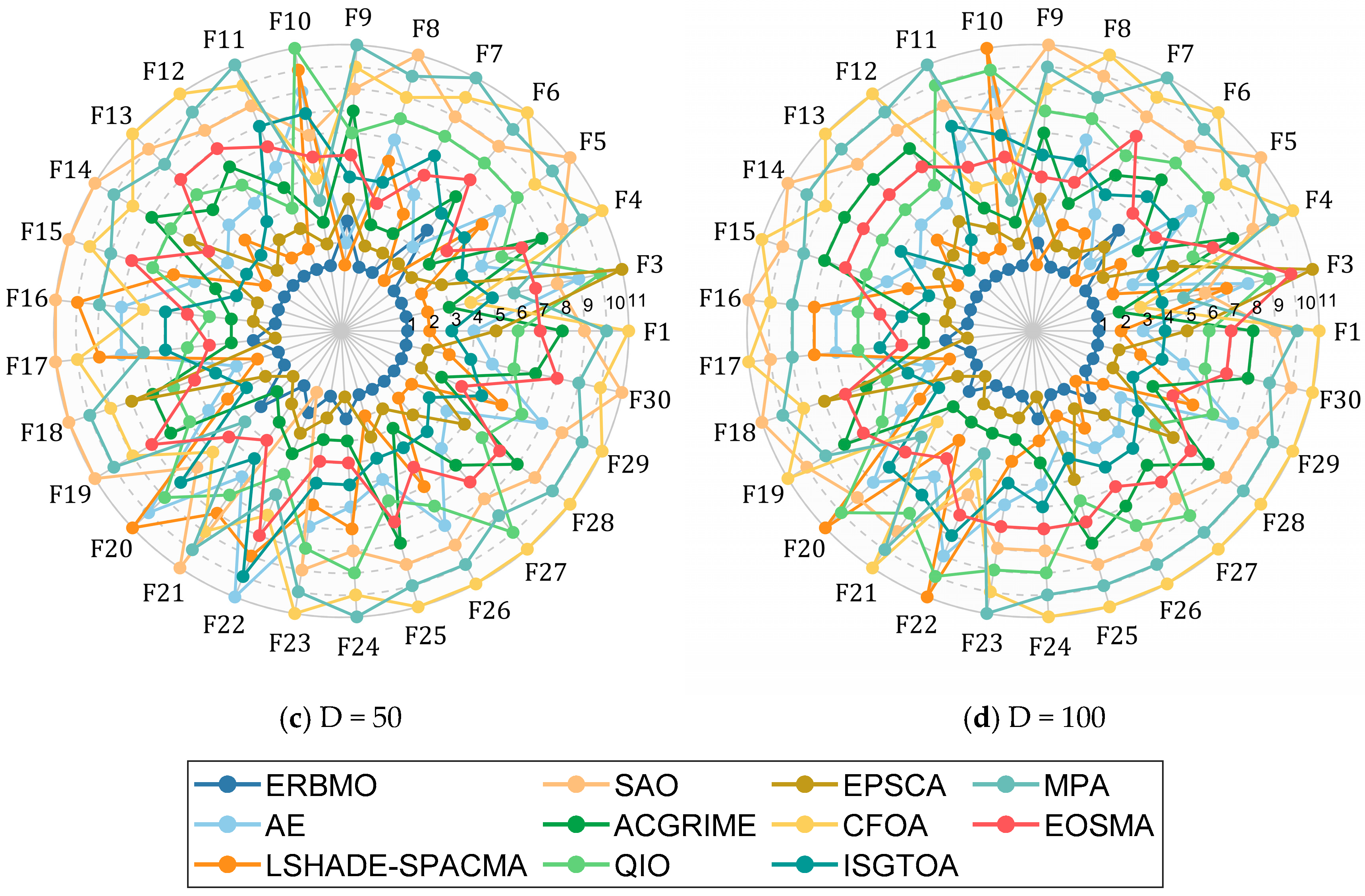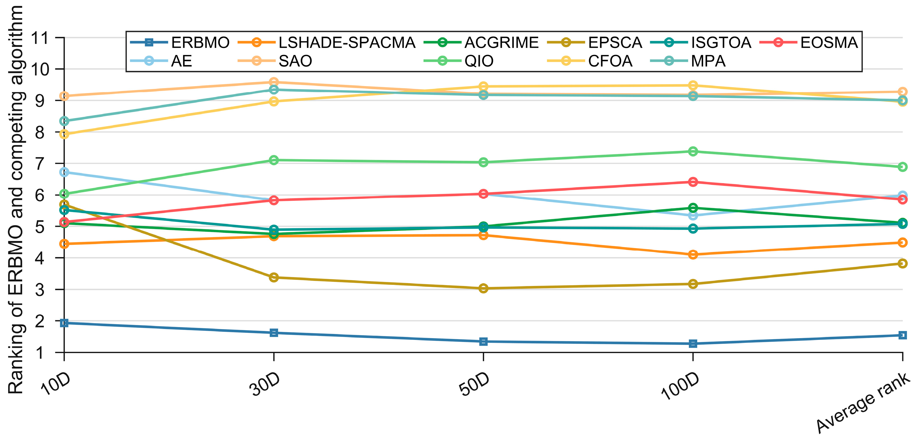 | No. | Index | ERBMO | AE | LSHADE-SPACMA | SAO | ACGRIME | QIO | EPSCA | CFOA | ISGTOA | MPA | EOSMA |