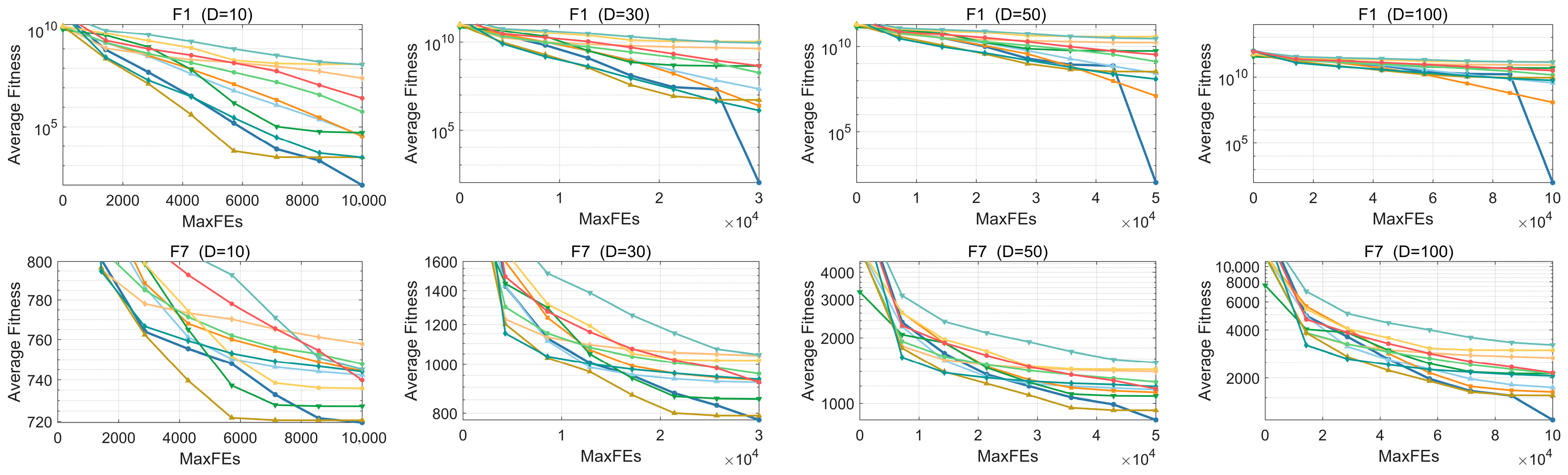 | F7 | Best | 8.0340E+02 | 8.0340E+02 | 8.0510E+02 | 8.1230E+02 | 8.1695E+02 | 8.0941E+02 | 8.2126E+02 |