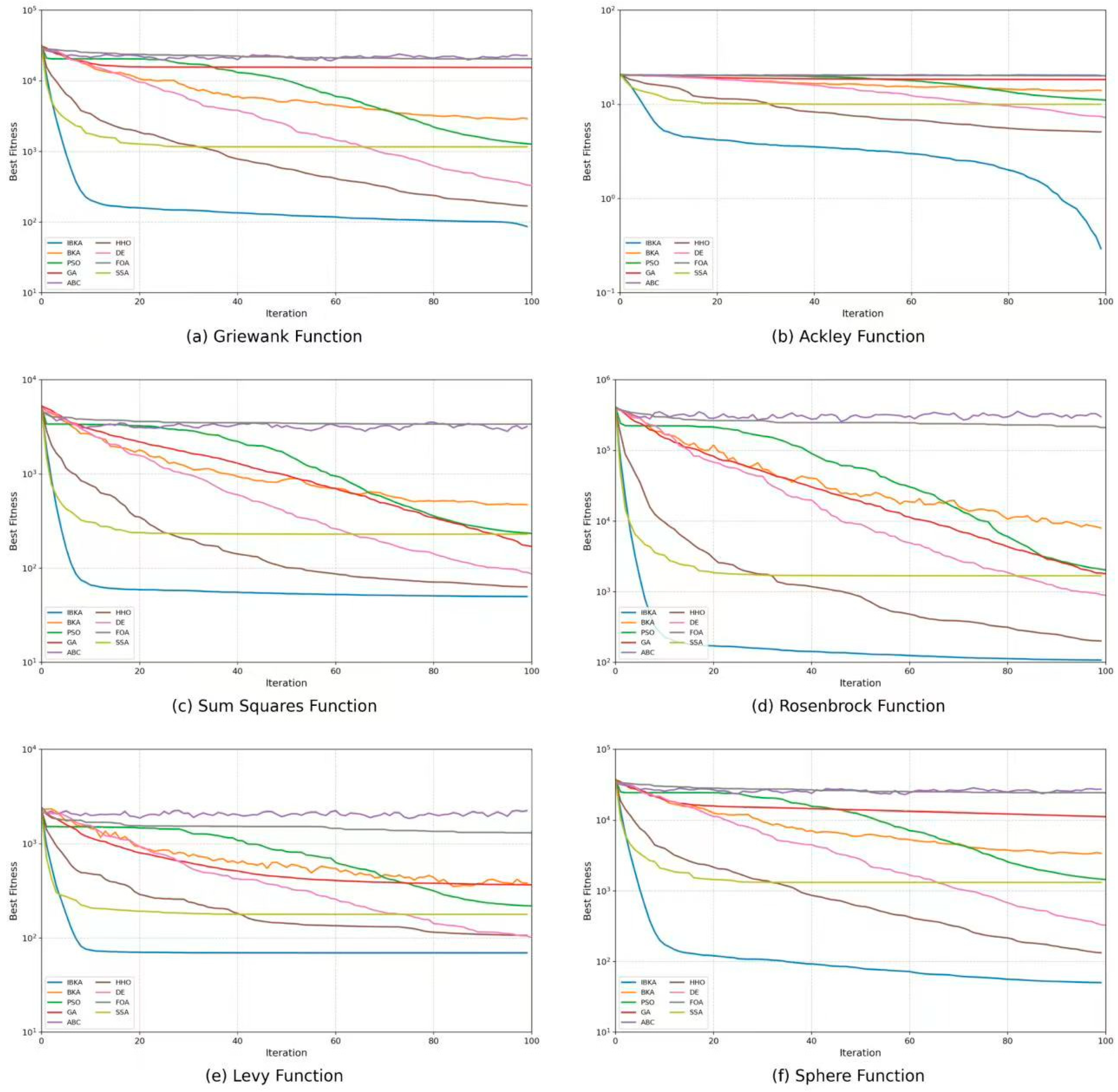 - We propose an Improved Black-Winged Kite Algorithm (IBKA) for cross-modal feature generation and optimization. The algorithm introduces an adaptive step-size update strategy, elite memory with opposition-based disturbance, Gaussian-based local refinement, and population diversity monitoring with re-initialization, ensuring a dynamic balance between global exploration and local exploitation.