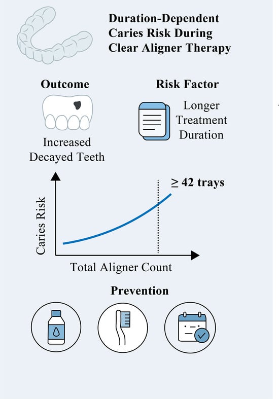 Yalçın, A.; Kavasoğlu, N. Duration-Dependent Caries Risk During Clear Aligner Therapy: A Retrospective Analysis. Biomimetics 2025, 10, 786. https://doi.org/10.3390/biomimetics10110786