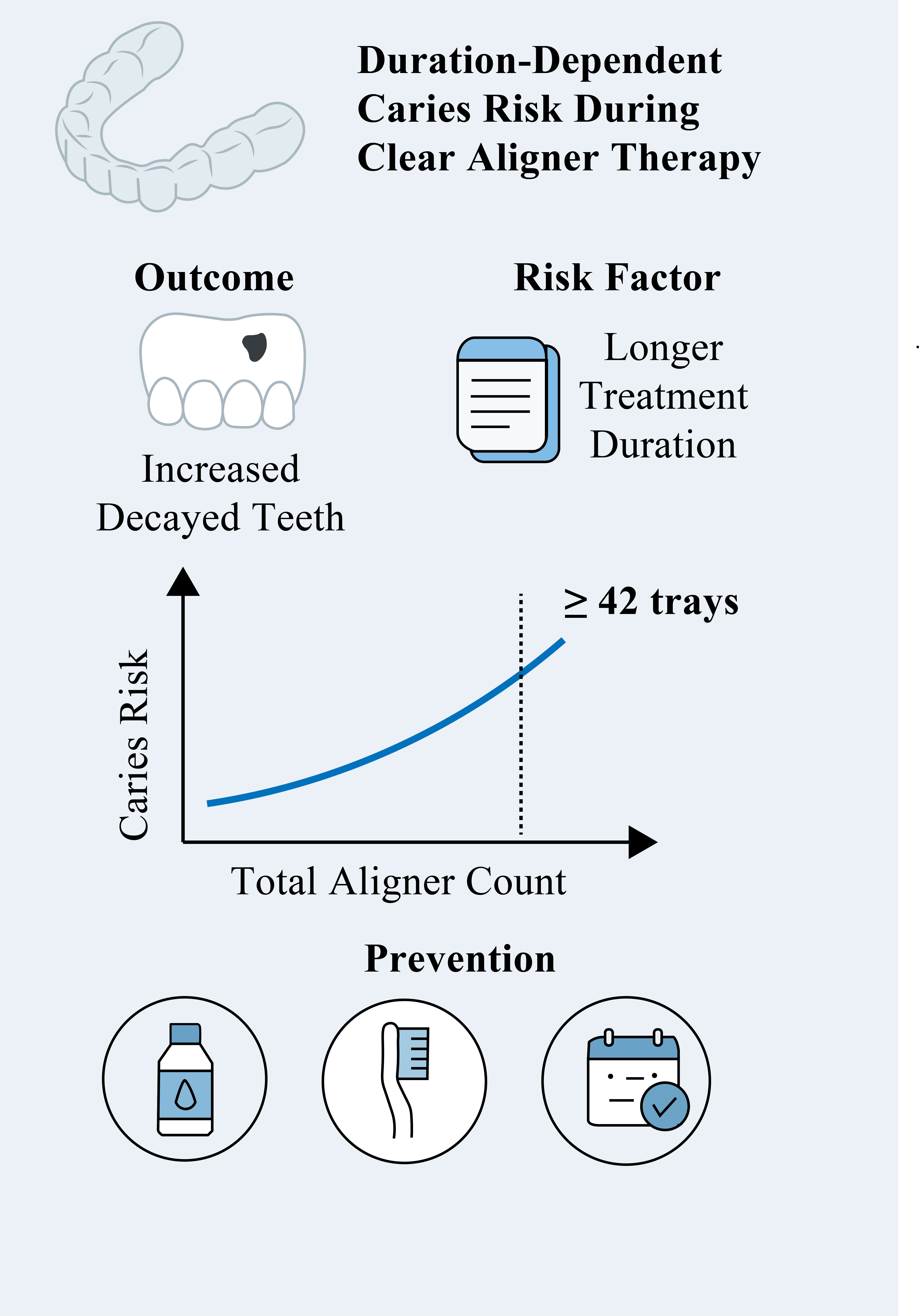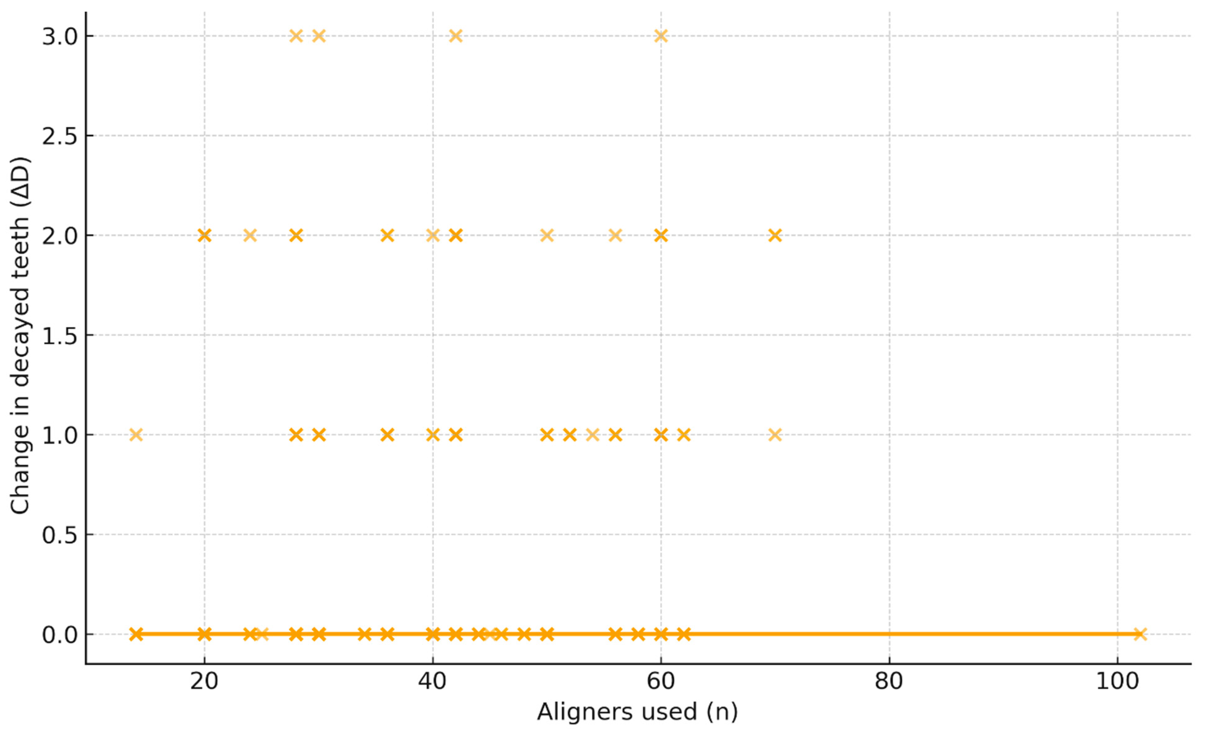 3.5. Each 10-Tray Increment Increases the Odds of New Caries by 55%
