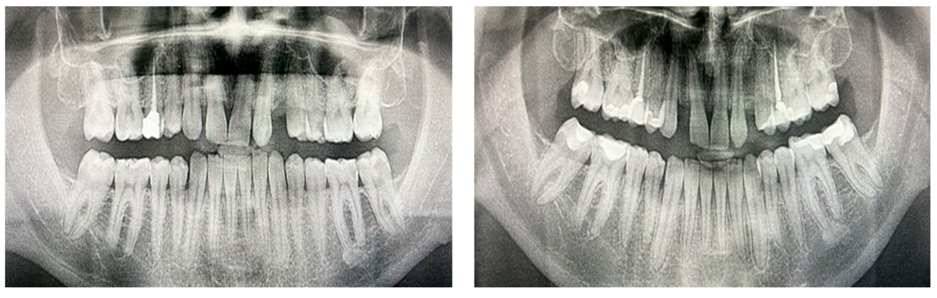 3.7. Representative Radiographs Demonstrate Subtle Post-Treatment Caries Changes
