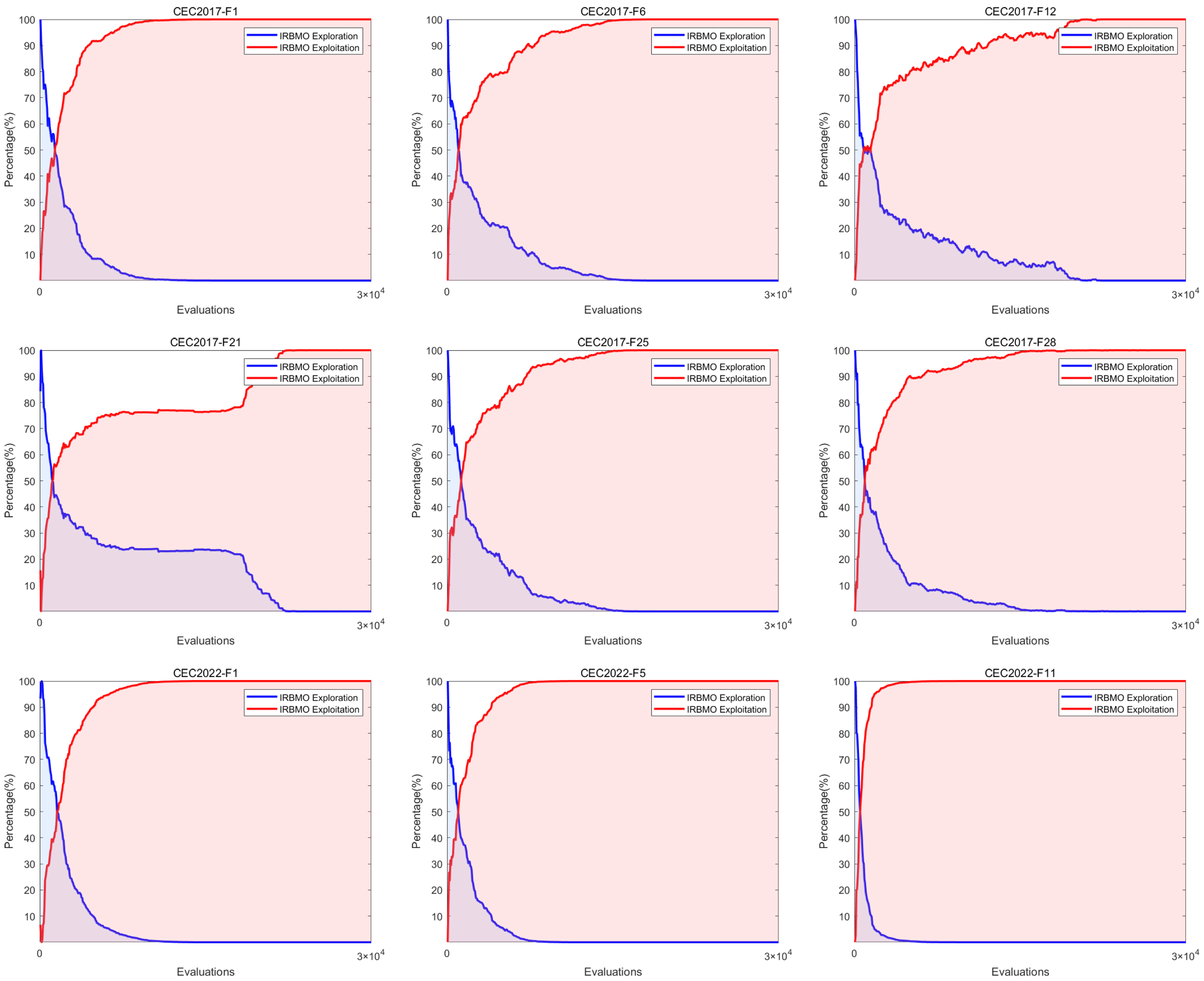 While IRBMO exhibits exceptional performance in this study, several limitations warrant future exploration. For instance, its convergence speed on specific multimodal functions shows marginal room for improvement compared to optimal benchmarks. Future work will focus on developing parameter self-adaptation mechanisms to strengthen algorithmic universality and extend IRBMO’s applicability to broader domains, such as multi-objective optimization, neural architecture search, and large-scale scheduling problems.