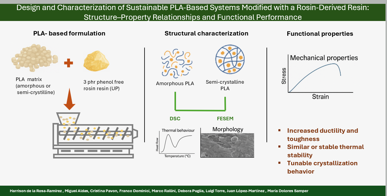 Rosa-Ramírez Hdl, Aldas M, Pavon C, Dominici F, Rallini M, Puglia D, Torre L, López-Martínez J, Samper MD. Design and Characterization of Sustainable PLA-Based Systems Modified with a Rosin-Derived Resin: Structure–Property Relationships and Functional Performance. Biomimetics. 2025; 10(12):801. https://doi.org/10.3390/biomimetics10120801