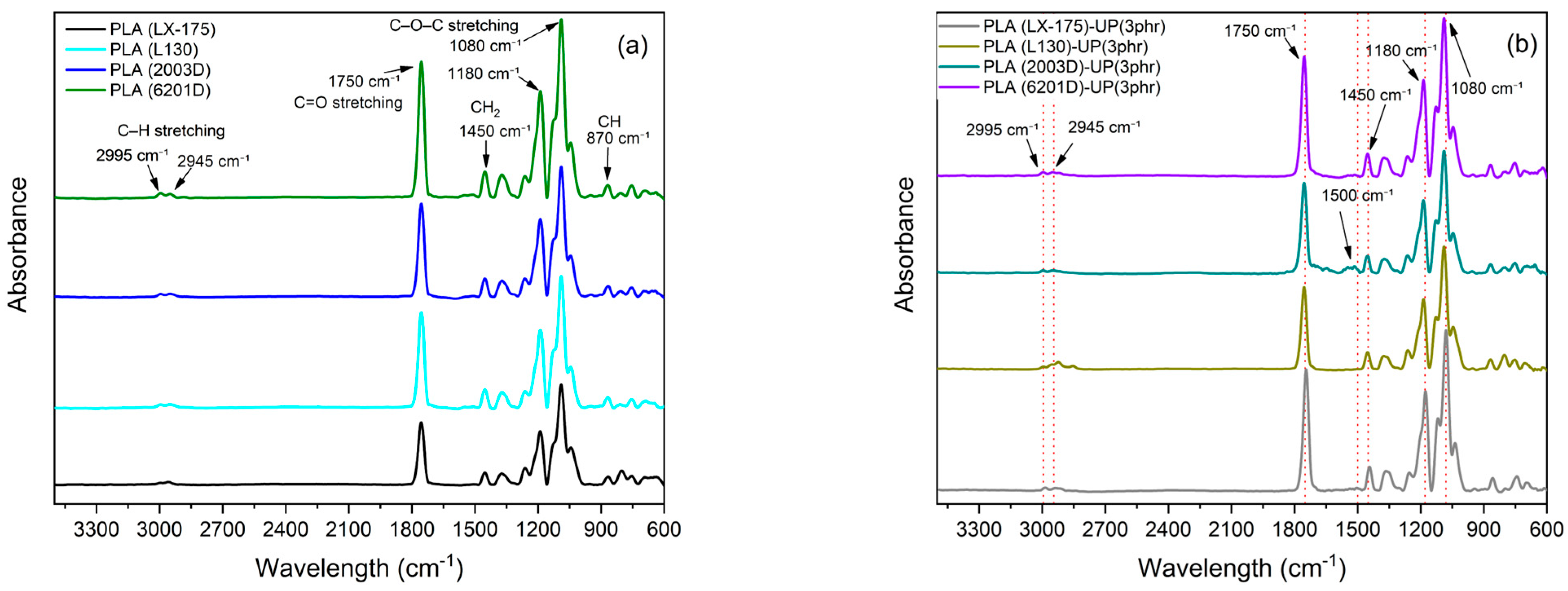 | PLA (L130) | 2411.5 ± 37.8 | PLA (L130)-UP(3 phr) | 3415.0 ± 41.5 | 41.6 |