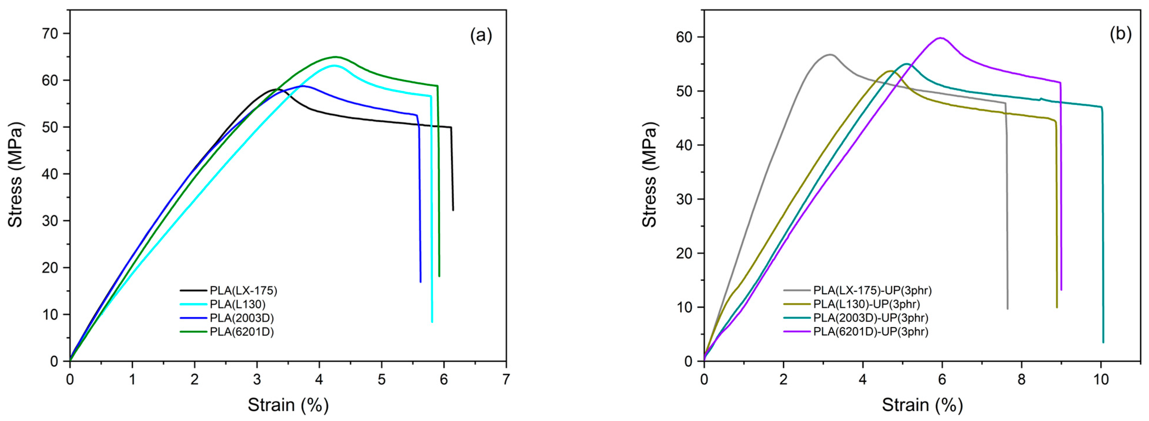| PLA (LX-175) | 2585.2 ± 30.4 | PLA (LX-175)-UP(3 phr) | 3313.9 ± 32.8 | 28.2 |