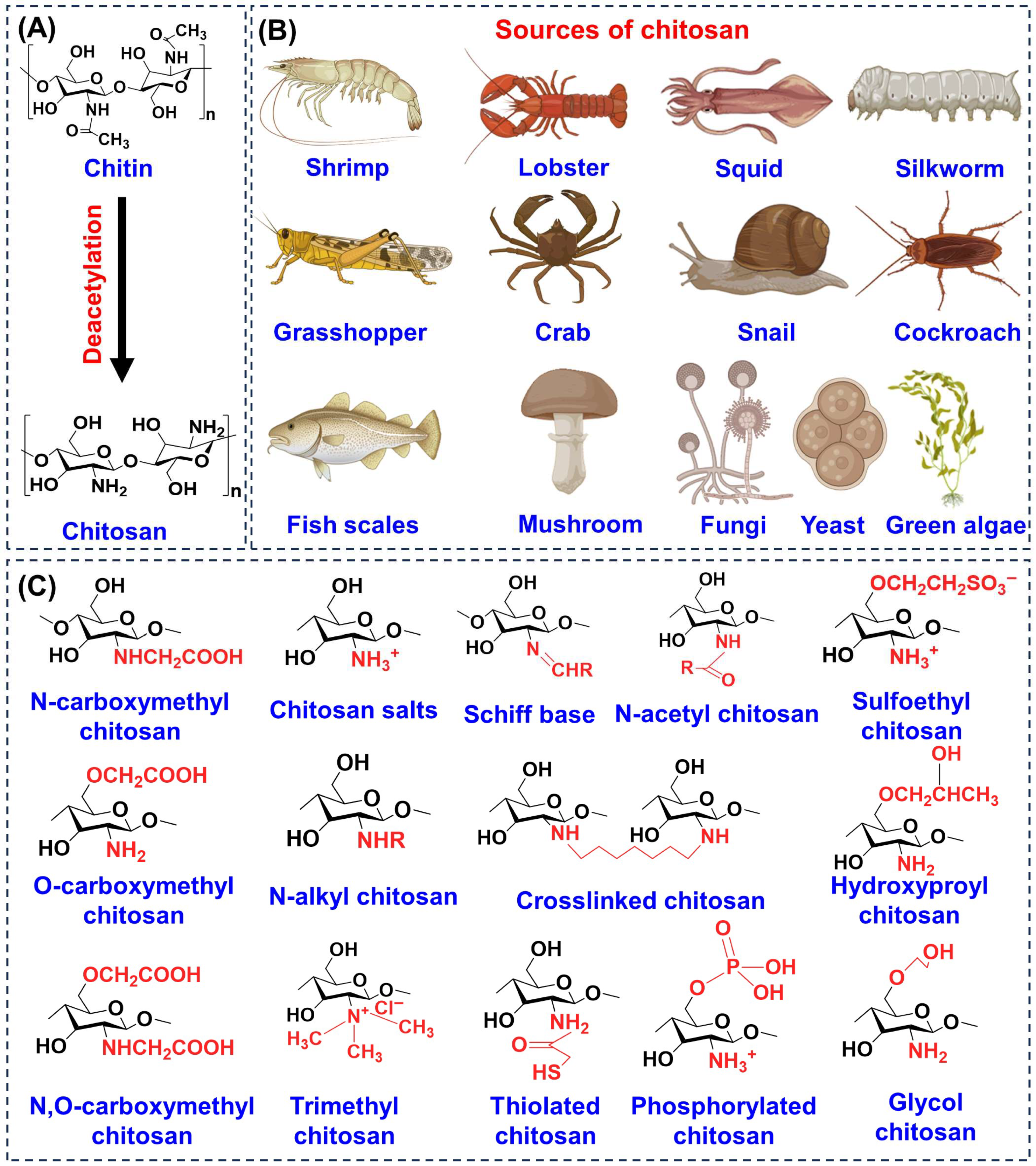 - Saputra, H.A. Andreas Chitosan and Its Biomedical Applications: A Review. Next Mater. 2025, 9, 101270. [Google Scholar] [CrossRef]