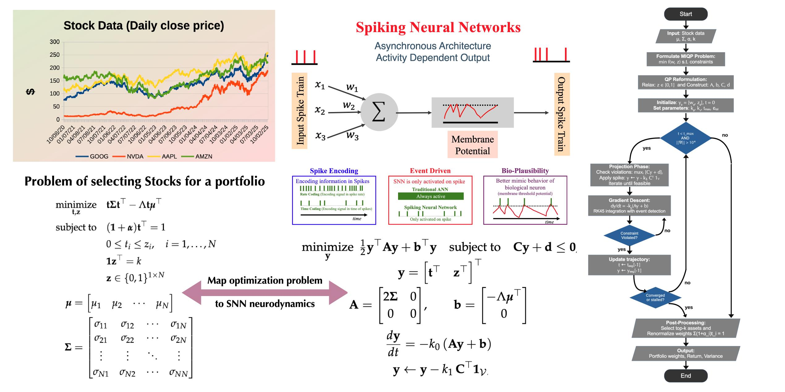 15] for detailed analysis. This biological computation model suggests an algorithmic strategy: if portfolio optimization can be reformulated as a constrained quadratic program compatible with LIF dynamics, it becomes amenable to implementation on specialized neuromorphic processors designed to execute spiking computations with extreme energy efficiency.