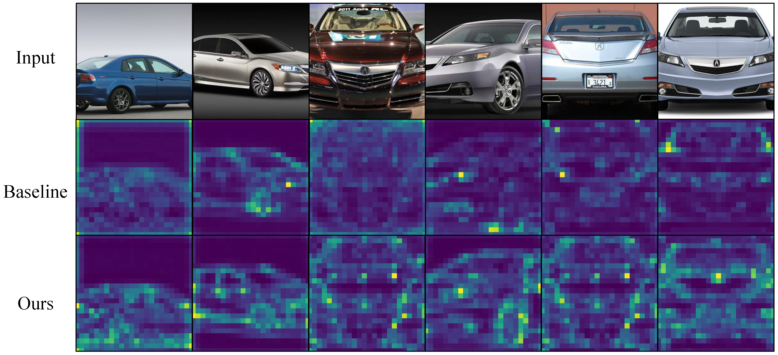 - The proposed method is evaluated on four widely used fine-grained benchmarks: CUB-200-2011, iNaturalist 2018, NABirds, and Stanford Cars, achieving top-1 accuracies of 92.9%, 90.5%, 93.1%, and 95.1%, respectively, demonstrating its effectiveness.
