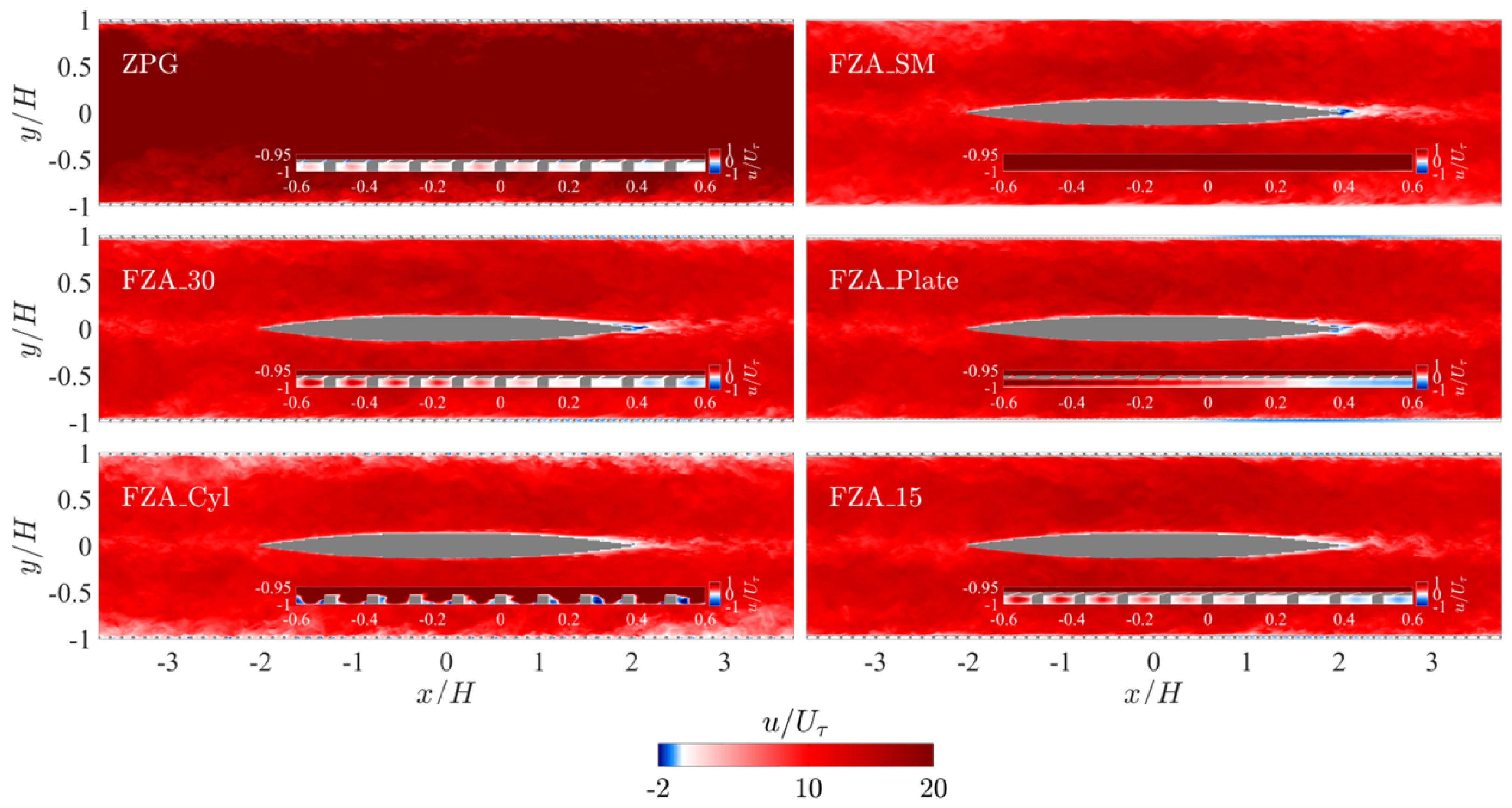 - Savino, B.S.; Rouhi, A.; Wu, W. Attached Decelerating Turbulent Boundary Layers over Riblets. arXiv 2025, arXiv:2505.16962. [Google Scholar] [CrossRef]